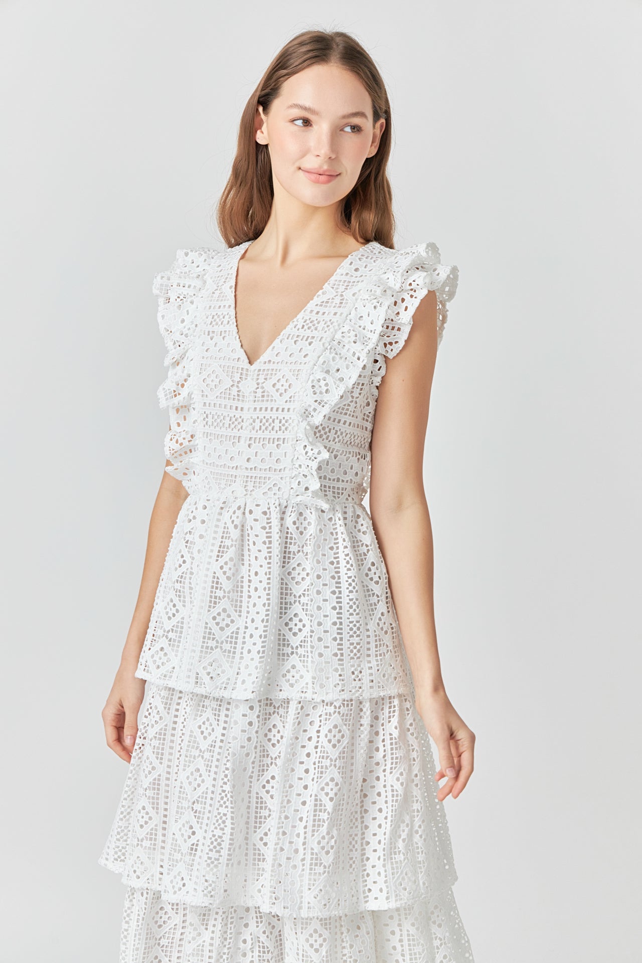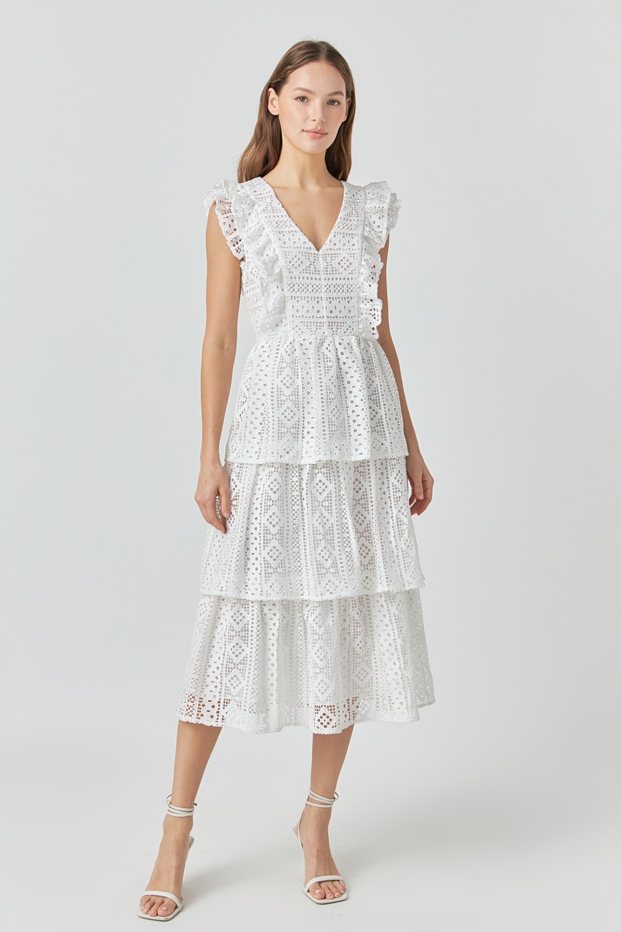 This beautiful Lace Tiered Midi Dress is perfect for any special occasion. Crafted from delicate lace fabric, this dress has tiers of lace across the length, creating an elegant, feminine look. The cut of the dress is perfect to show off the natural beauty of you figure, while the flattering V-neckline completes the look. Finished with a zip closure and puff detailing at the sleeve, this dress is sure to turn heads. The perfect choice for a special day.