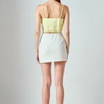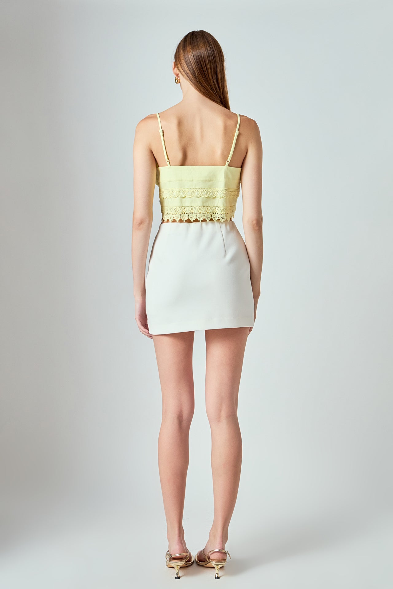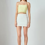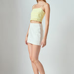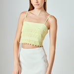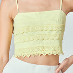 The Lace Trim Crop Top blends soft femininity with effortless ease. Crafted from lightweight linen and finished with delicate lace accents, it features adjustable straps and a flattering cropped length, perfect for pairing with high-waisted skirts or trousers. Whether styled for daytime ease or evening polish, this versatile piece adds a touch of romance to any summer wardrobe.