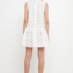 This lovely Lace Trim Detail Mini Dress is your new go-to garment. Its comfy flowy fabric is highlighted by a beautiful lace trim providing a unique detail. Pair this dress with some flats and you'll be ready for a day in the sun. Its sleeveless design is great for a hot summer day and the smocked details complete the look. Buy this mini dress to add a unique and stylish item to your wardrobe that will get you the compliments you deserve.