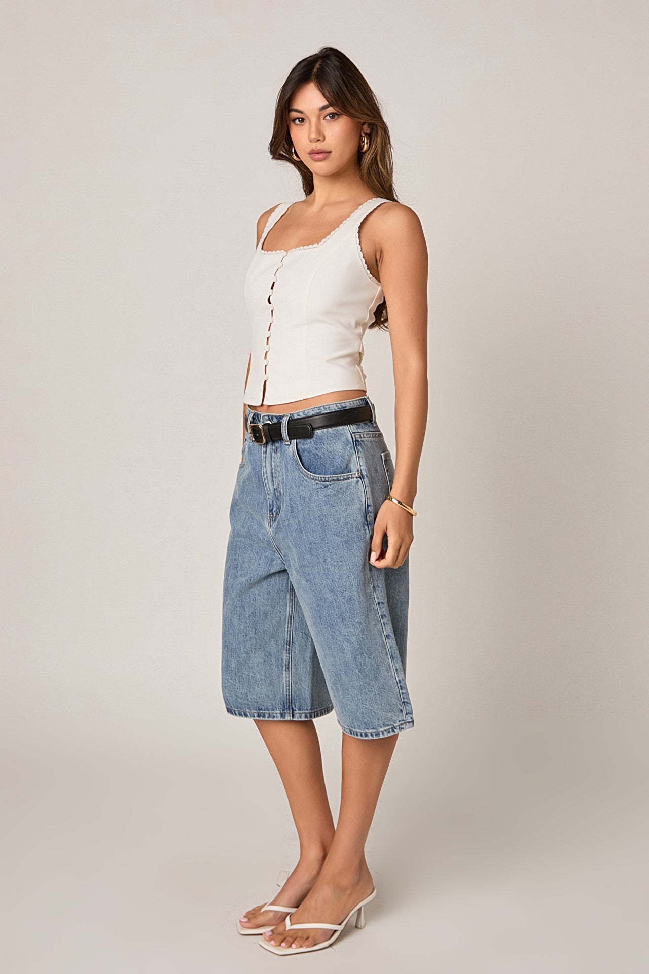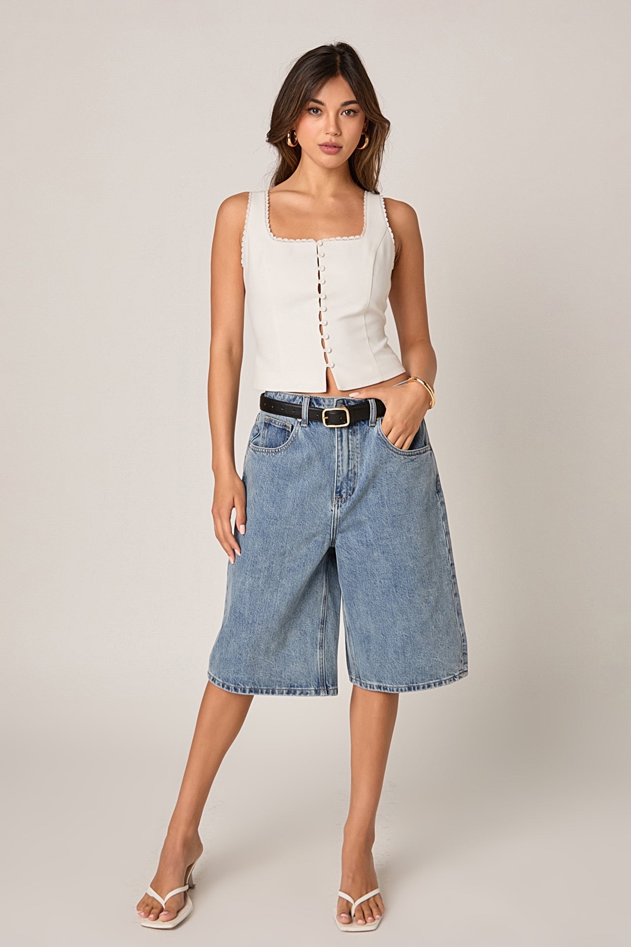 Introducing our Lace Trim Linen Top, the perfect blend of classic and trendy. Made from luxurious linen, this top is lightweight and breathable, perfect for hot summer days. The delicate lace trim adds a touch of elegance, while the sleeveless design keeps you cool and stylish. With a button-down front, you can easily adjust the fit to your liking. This versatile top can be dressed up for a special occasion or dressed down for a casual day out. Upgrade your wardrobe with our Lace Trim Linen Top and elevate your style game. Order now while supplies last!
