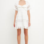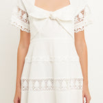 The perfect party dress for your little girl. She'll love the pretty lace trim and sultry side zipper on this mini dress. With functional front ties, she can adjust the fit to her liking. Dress her up in style for any special occasion with our Lace Trim Mini Dress.