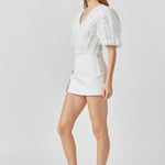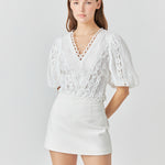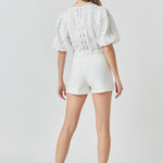 Laced V-Neck Puff Sleeve Top