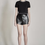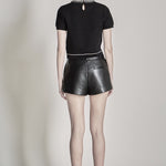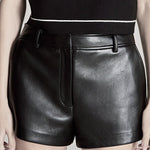 Our Jade Leather Shorts bring an effortlessly cool edge to any outfit. Cut in a flattering mini length, they feature a front zipper with hook-and-bar closure for a clean, structured fit. Side pockets add a practical touch, while the sleek leather finish gives them a polished, modern feel. Perfect for pairing with everything from tailored blazers to casual knits, these shorts are a versatile staple with attitude.