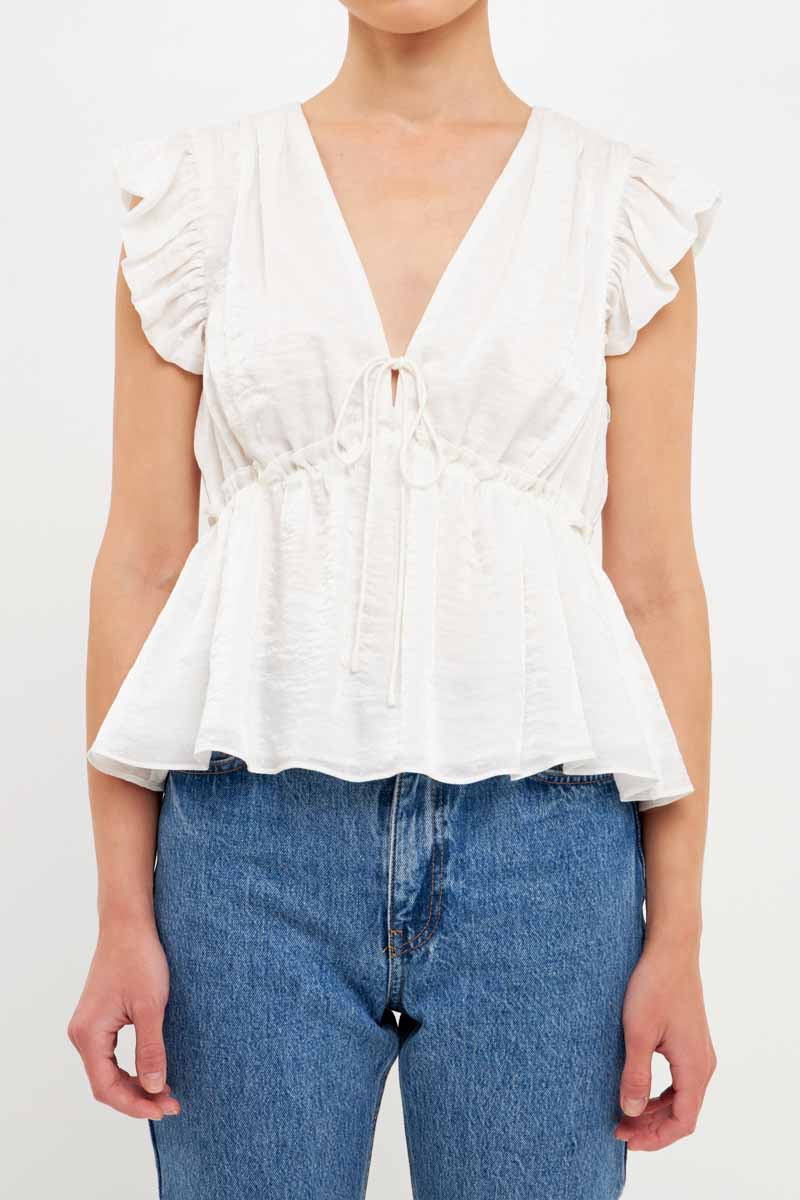 Light Sheen Woven Front Tie Top