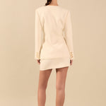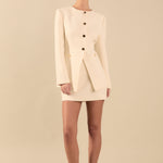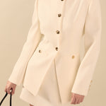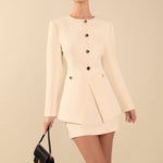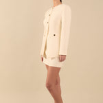 Elevate your wardrobe with our effortlessly chic Celia Buttoned Linen Blend Suit Jacket. Crafted from soft, breathable linen, it's the perfect layering piece for year-round wear. The round neckline and long sleeves add an elegant touch, while the shoulder pads create a structured, flattering silhouette. Designed for a polished, sophisticated look, this jacket is a must-have for every fashion-forward individual. Embrace both comfort and style with a piece that makes you stand out. Ideal for any occasion, this jacket will quickly become your go-to for a sleek, refined look.