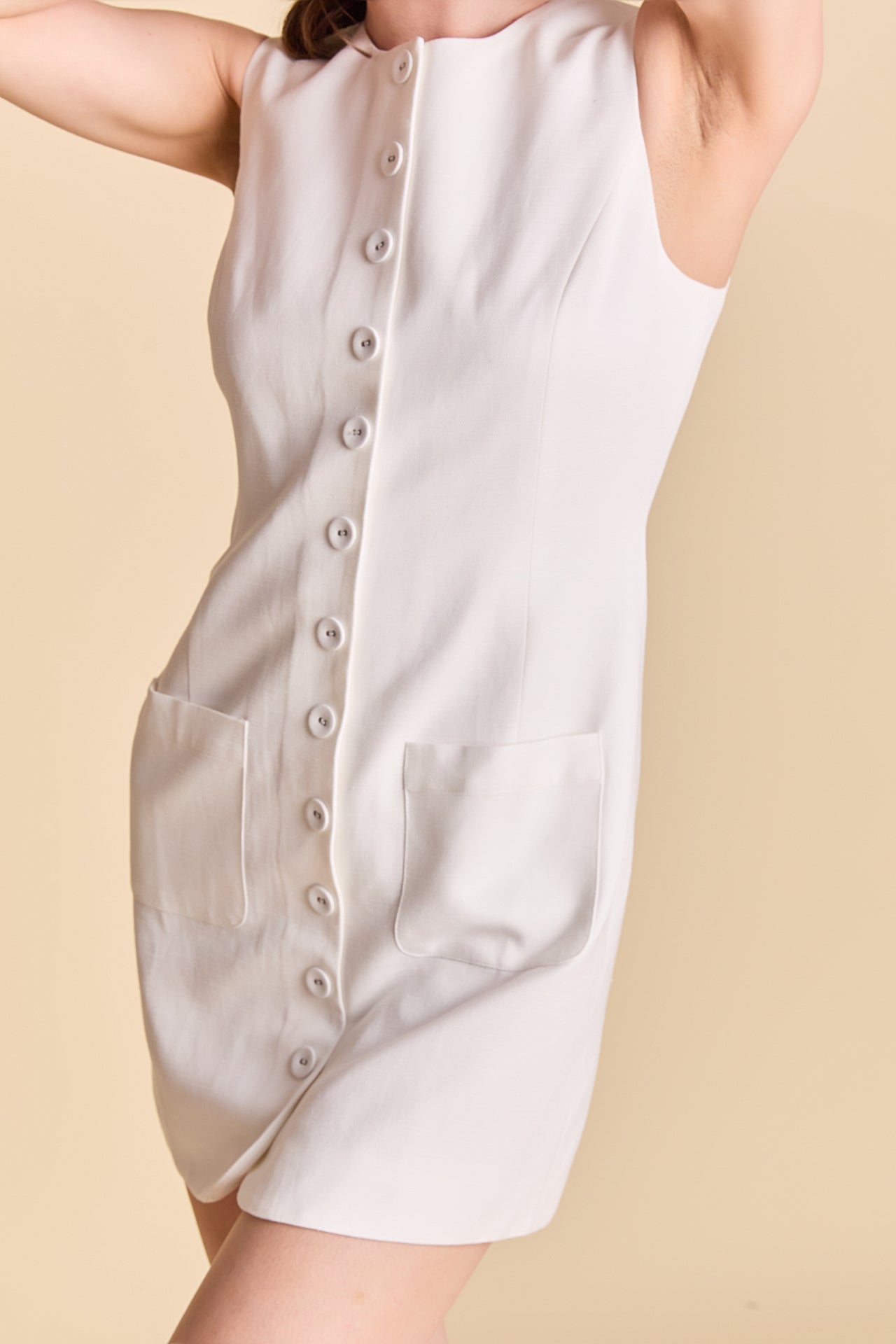 Upgrade your summer wardrobe with our Linen Buttoned Mini Dress. Designed with a timeless round neckline and made from high-quality linen, this dress is a must-have for any fashion-forward individual. The mini length adds a touch of flirtiness and the buttoned detailing adds a touch of elegance. Perfect for any occasion, you'll love the effortless style and comfort this dress brings. Plus, with its lightweight and breathable fabric, you'll stay cool and comfortable all day long. Elevate your look with our Linen Buttoned Mini Dress and make a statement that's sure to turn heads.