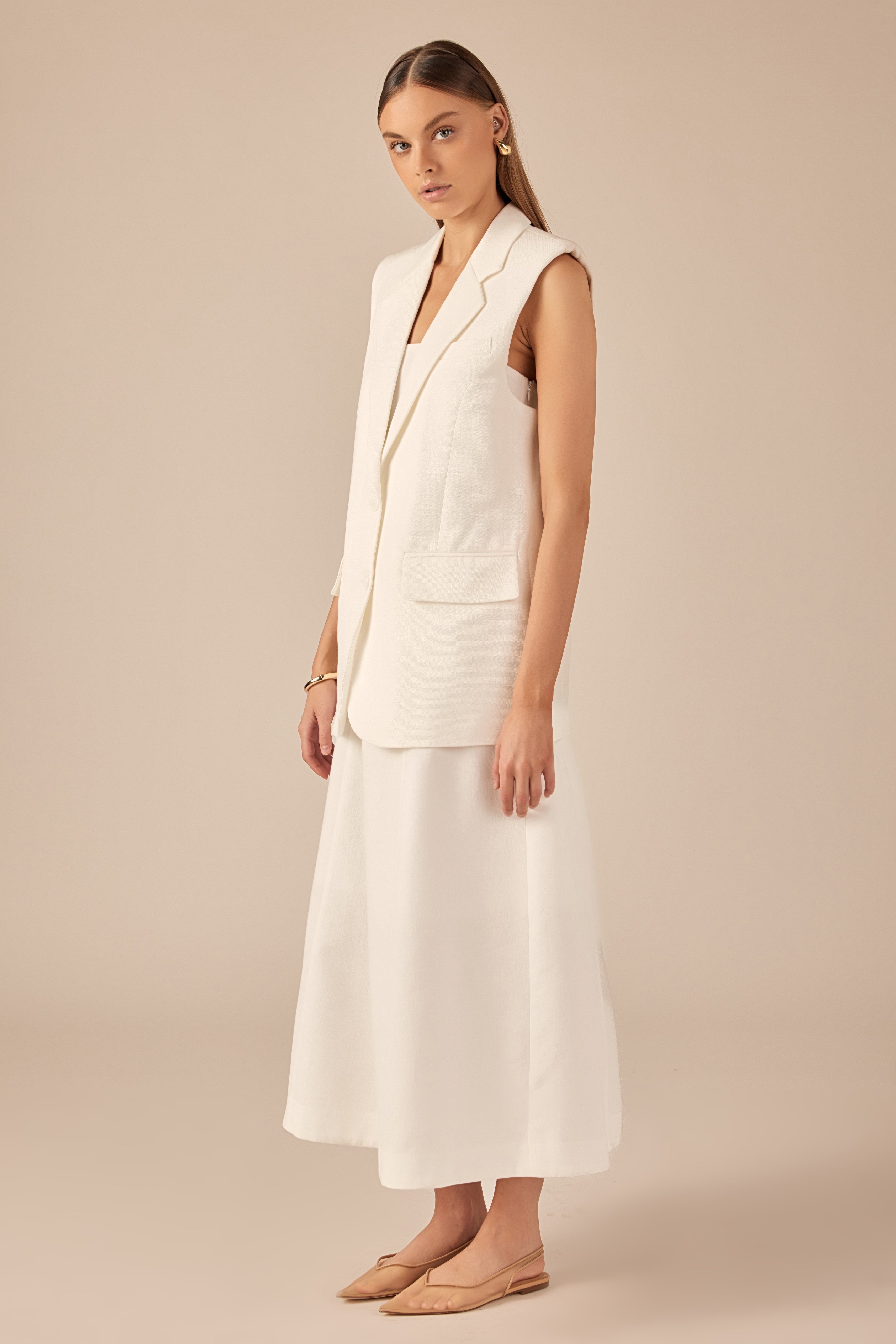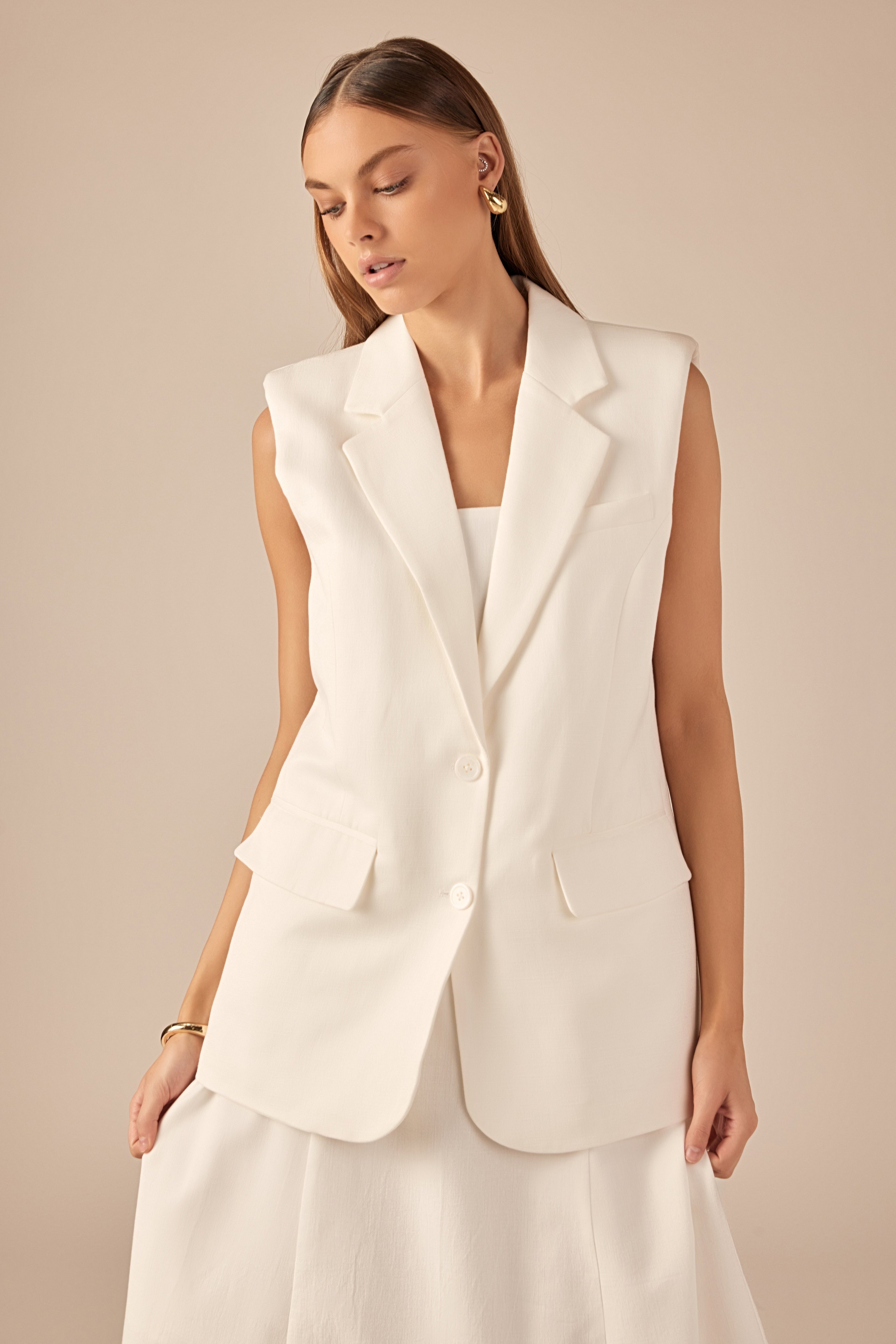 Introducing our Linen Oversize Vest Blazer the must-have piece for effortless style. Made from high-quality linen for a lightweight and breathable feel, this blazer features an on-trend oversize fit that flatters every body type. It's also sleeveless, making it perfect for layering over any outfit. With a single breast closure, it's both stylish and functional. Perfect for any occasion, from the office to a night out, this blazer is a versatile addition to your wardrobe. Shop now and elevate your look with this modern take on a classic blazer.