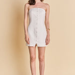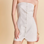 Upgrade your summer wardrobe with our Linen Strapless Dress. Made from lightweight and breathable linen this dress is perfect for warm weather. The strapless design shows off your shoulders while the mini length adds a touch of playfulness. With a row of buttons down the front this dress is versatile and chic. Whether you're heading to a picnic or a beach day this dress is a must-have. Say hello to effortless style and comfort with our Linen Strapless Dress. Don't miss out on this summer essential. Add it to your cart now!