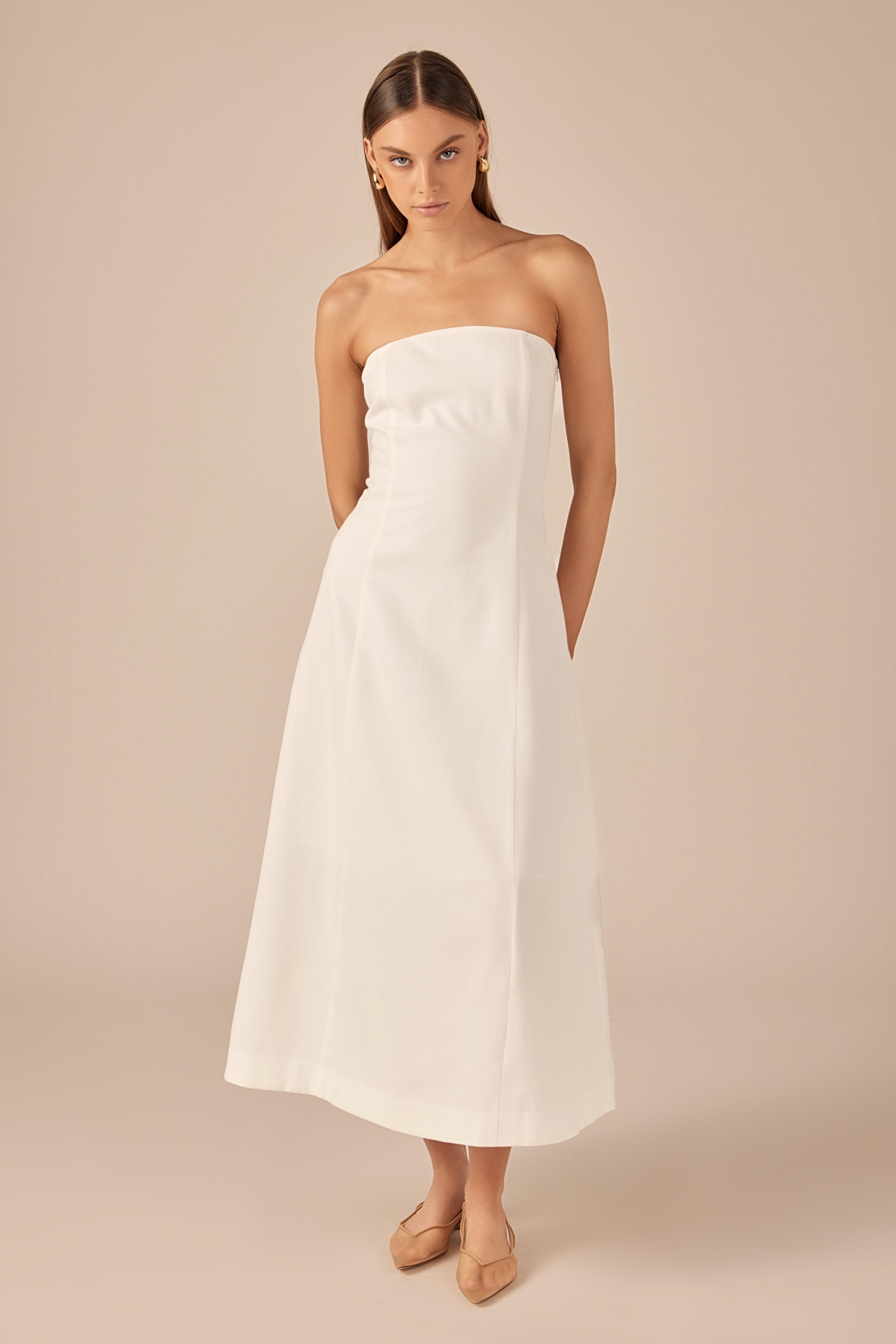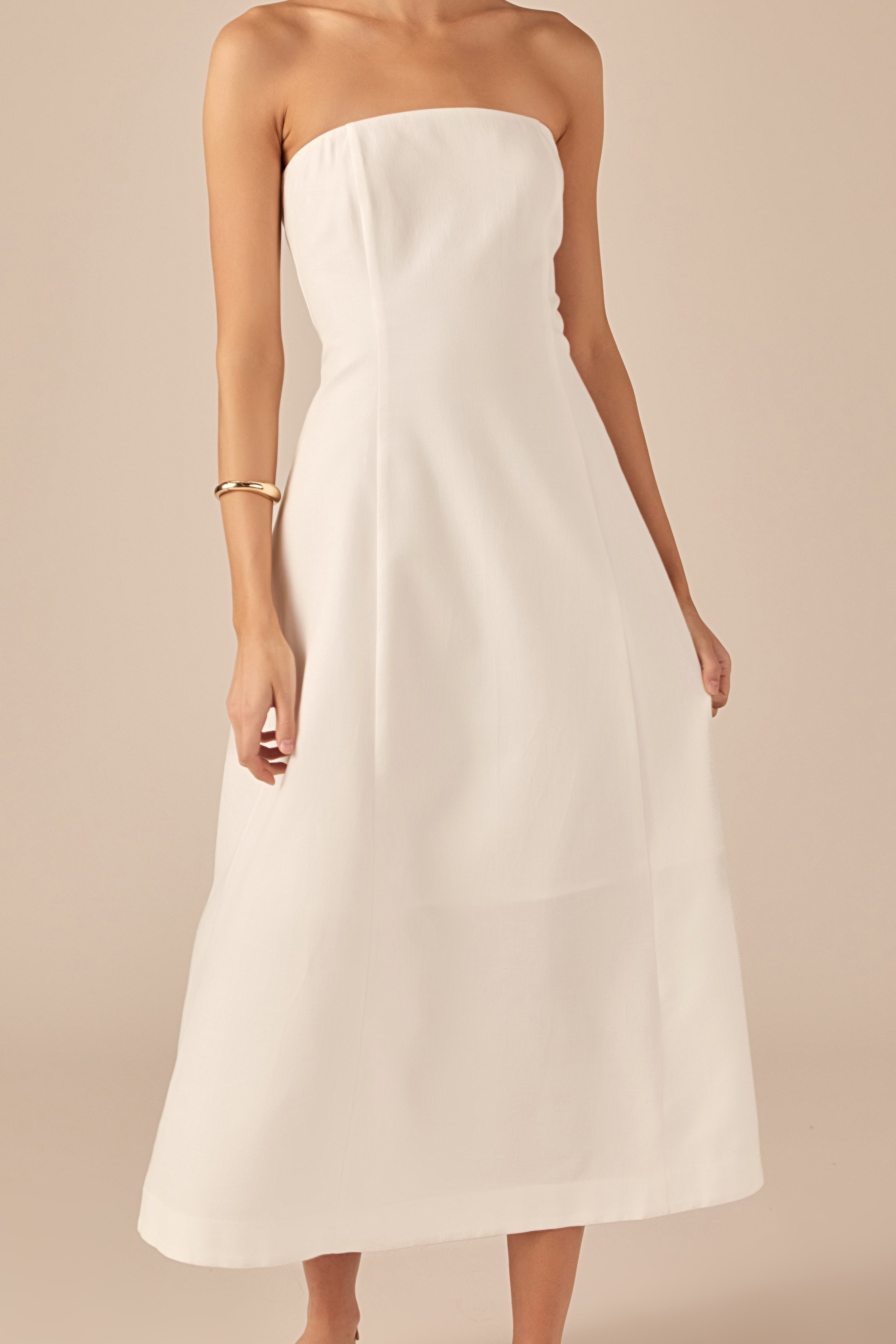 Discover the epitome of effortless elegance with our Linen Strapless Dress. Crafted from premium quality linen, this maxi-length dress boasts both comfort and style. The strapless design allows for a flattering fit, while the maxi length adds a touch of sophistication. Perfect for any occasion, this dress is a must-have for your wardrobe. Its lightweight and breathable fabric makes it ideal for warmer weather. Elevate your fashion game with this versatile and timeless dress. Shop now and make a statement with our Linen Strapless Dress.