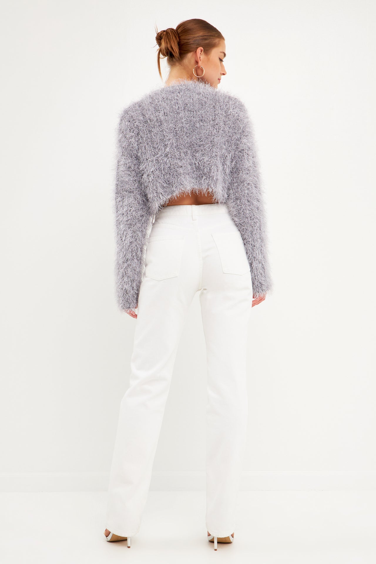 Made from a soft fabric, this cropped sweater is perfect for any occasion. Whether you're attending a barbeque or going to work, this sweater can be dressed up and down. Style with a sparkly sequin skirt and heels to make a statement or throw on your favorite jeans and boots when you want to be comfortable and cute.