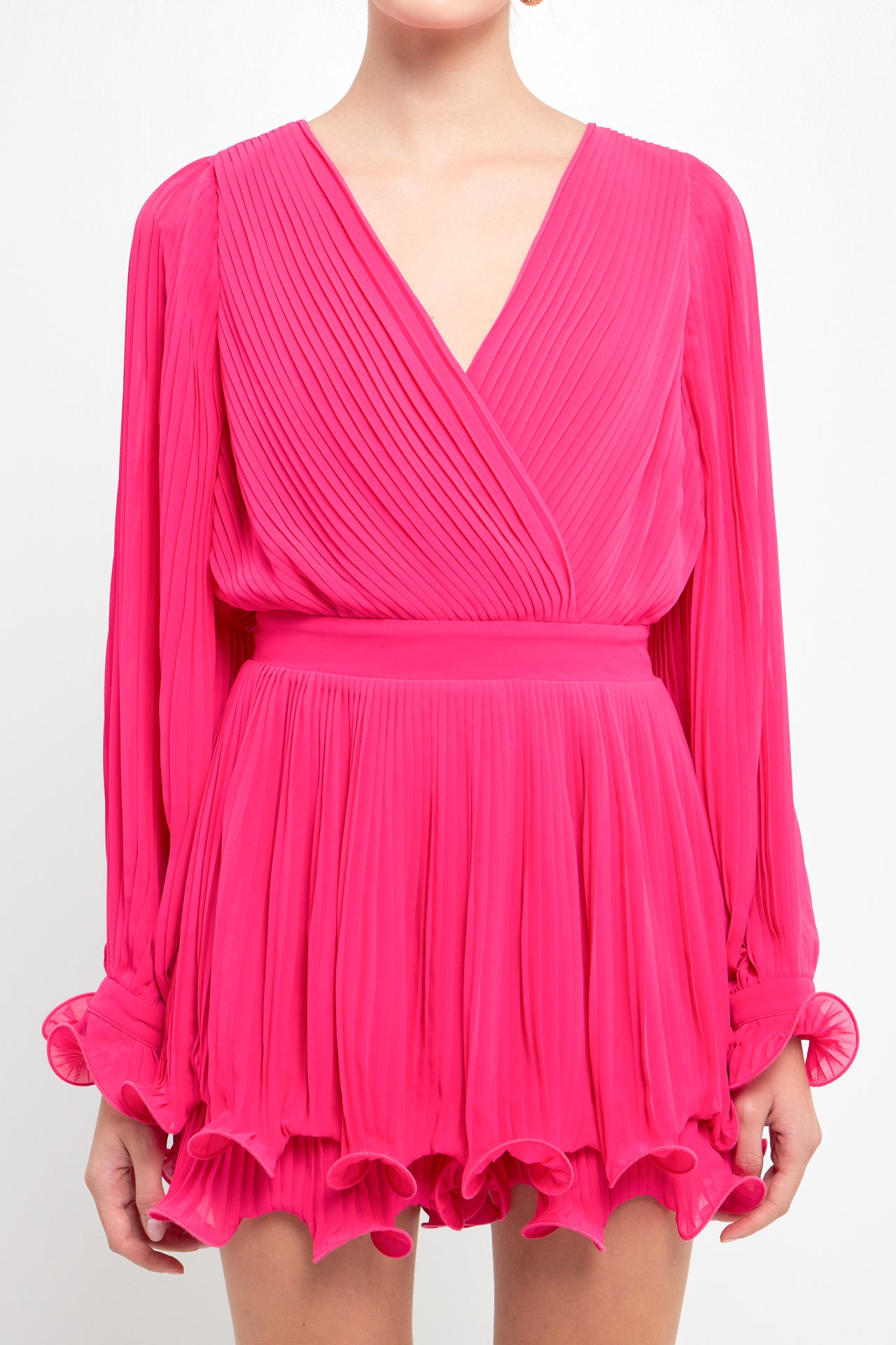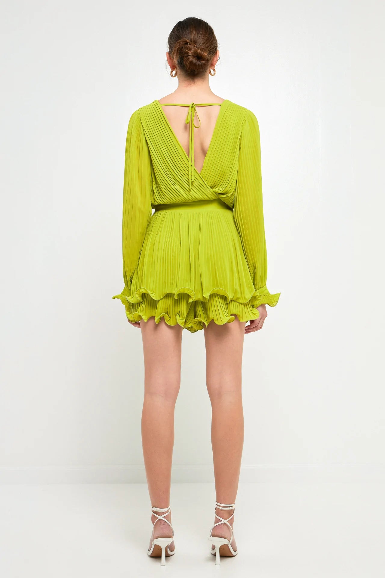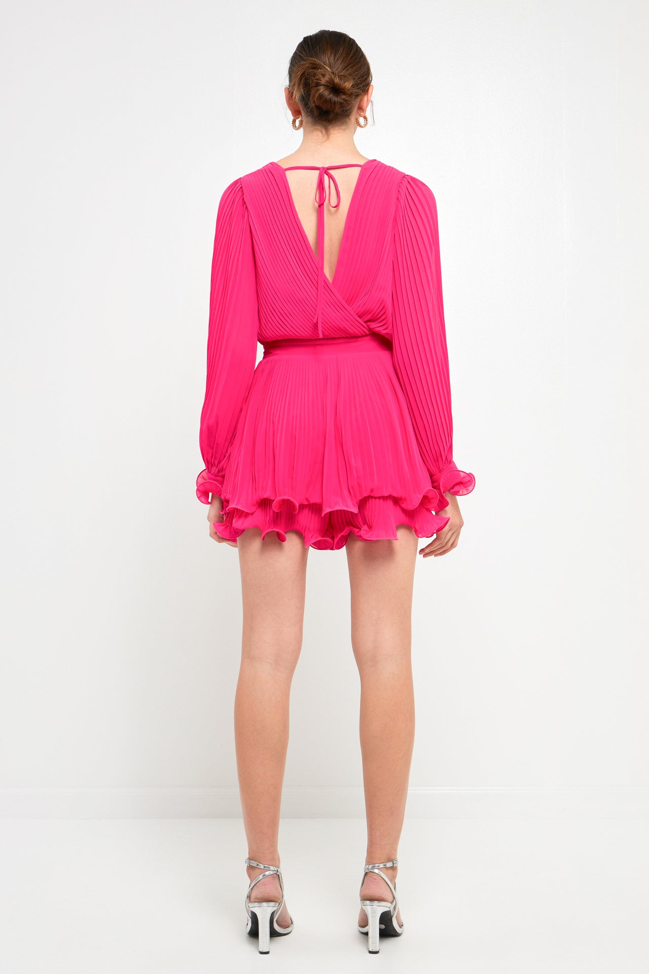 Pleated Long-Sleeve Romper
