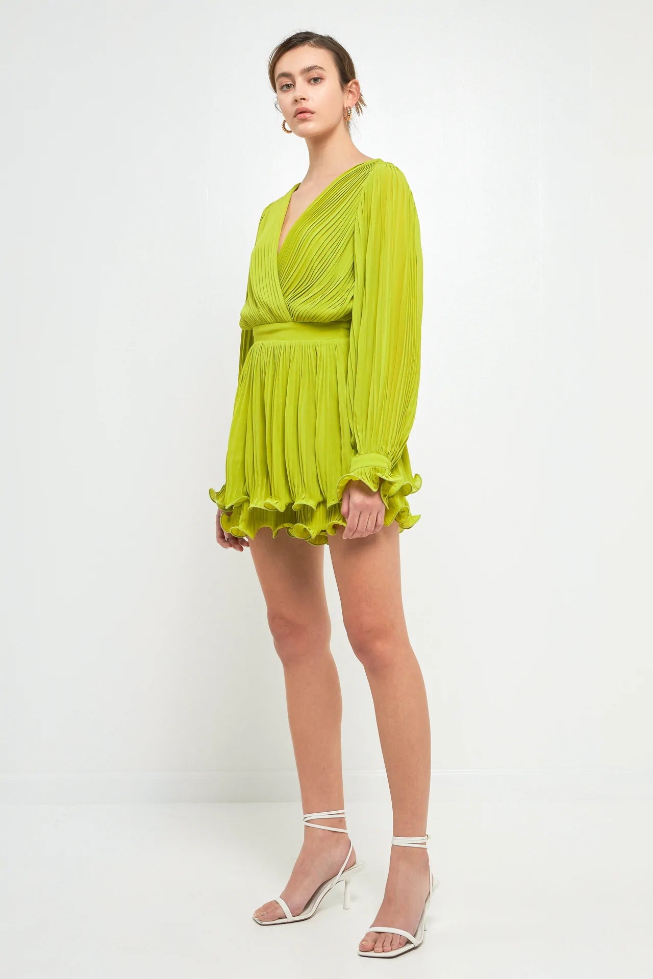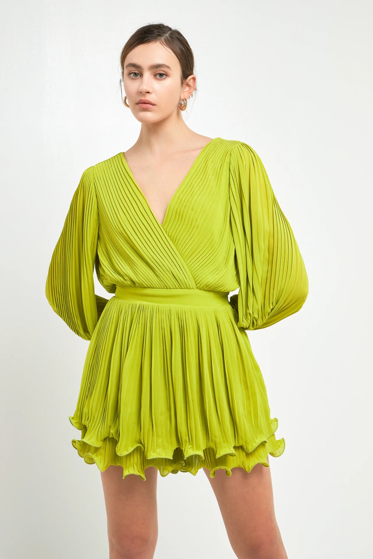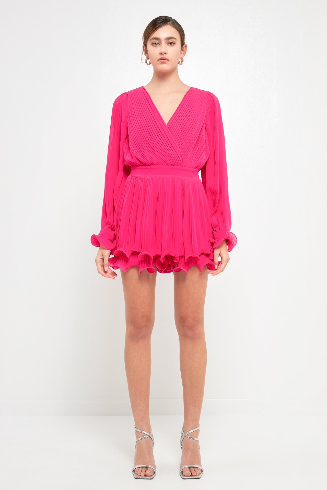 Pleated Long-Sleeve Romper