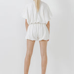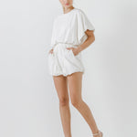 Stay comfortable and stylish with our Short-Sleeve Balloon Silhouette Romper. Featuring a relaxed fit and round neckline, this romper is perfect for lounging around or dressing up for a night out. Its unique balloon silhouette adds a playful touch to any outfit. Made from soft, breathable fabric, this romper will quickly become your go-to piece. From lazy days at home to fun gatherings with friends, our versatile Loungewear Romper has got you covered. Shop now and elevate your loungewear game!