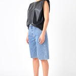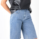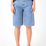 Our Low Waisted Denim Shorts offer an on-trend midi length and classic denim fabric for a effortlessly cool look this season. The shorts feature two pockets and a zipper and button closure for the perfect fit. These unique shorts showcase ideal comfort and style making them a must-have for any wardrobe. With denim and pockets these shorts are sure to turn heads and make a statement.