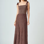 Look effortlessly elegant in our Lurex Sleeveless Maxi Dress. This stunning dress boasts a straight neckline and sleeveless design, making it perfect for any occasion. The shoulder tie strap adds a touch of femininity while the maxi length creates a flattering silhouette. Made with high-quality Lurex fabric, it has a subtle shimmer that will make you stand out wherever you go. Perfect for both day and night, this dress is a versatile must-have for your wardrobe. It's sure to become your go-to dress. Upgrade your style with our Lurex Sleeveless Maxi Dress.