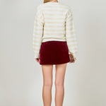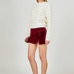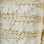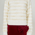 This Lurex Striped Sweater provides the ideal way to add texture and sparkle to your look. The relaxed fit and round neckline create a flattering laid back vibe that's perfect for casual days. The long sleeves and luminescent lurex striped detailing add a playful twist to any outfit. Upgrade your knitwear collection with this fun and stylish Lurex Striped Sweater!