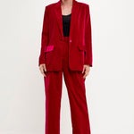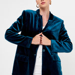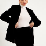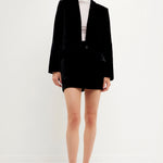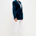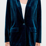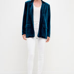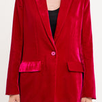 A velvet blazer is a great staple piece to have in your wardrobe. This Velvet Blazer will add a bit of luxury to your outfit and easily dress up your look. Plus, the boyfriend fit adds an element of effortlessness. The versatile design can be worn with slacks to work or paired with a sequin top, jeans, and heels for a sophisticated, fun look for a night out with your friends.
