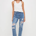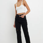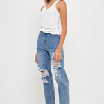 These jeans will take you back to the good old days. With a timeless medium wash and distressed detailing, these jeans are perfect for channeling your inner 90s babe. Made from high-quality denim, they'll last you through countless seasons of wear. With a comfortable high-rise fit and full-length leg, these jeans will become your go-to for relaxed weekend vibes.