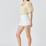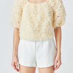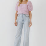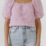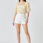 This Mesh Fabric Floral Shape Top is perfect for any professional woman. The lilac hue is flattering and the floral fabric is beautiful. The puff sleeves and off the shoulder top give this top a stylish and unique look.