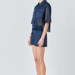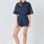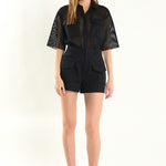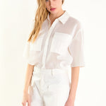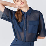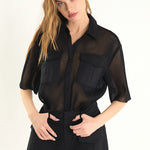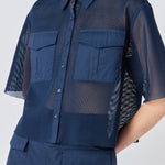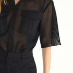 Effortlessly chic yet practical, our Mesh Net Top with Pockets is a must-have addition to your closet. Made from breathable fabric and featuring a smart collared neckline, this top boasts convenient front pockets for all your essentials. The relaxed, fitted silhouette is perfect for both casual and dressy occasions. And with a front button-down design, it offers both style and functionality. Whether pairing it with jeans or a skirt, this top is sure to elevate any look. Stay on-trend and organized with our Mesh Net Top with Pockets. Order now!