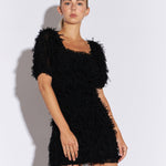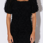 This form-fitting mini dress is perfect for your next big event. The mesh-trimmed fitted mini dress features blouson sleeves and is lined for a comfortable fit. This dress will show off your curves in all the right ways. Add some strappy heels and you're ready to party.