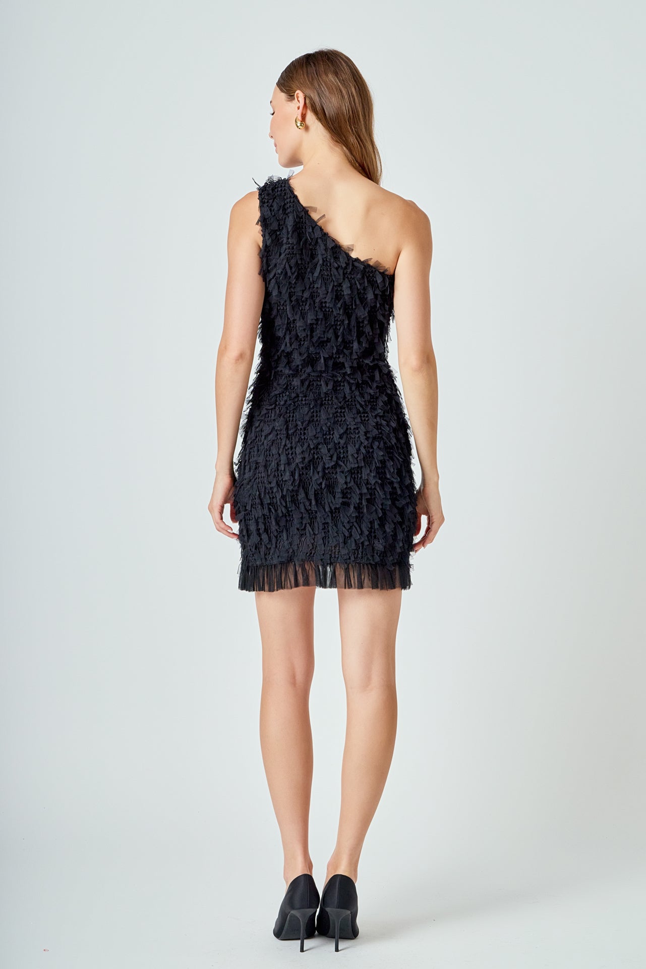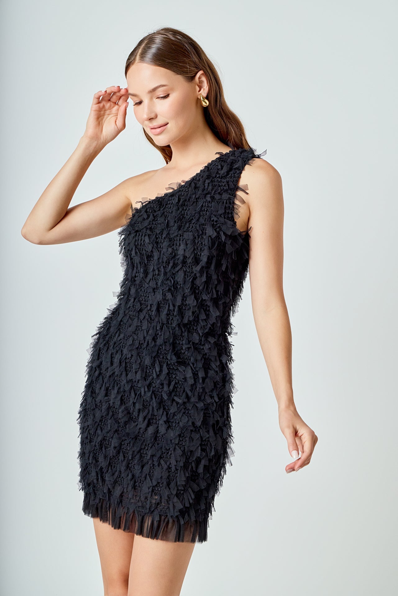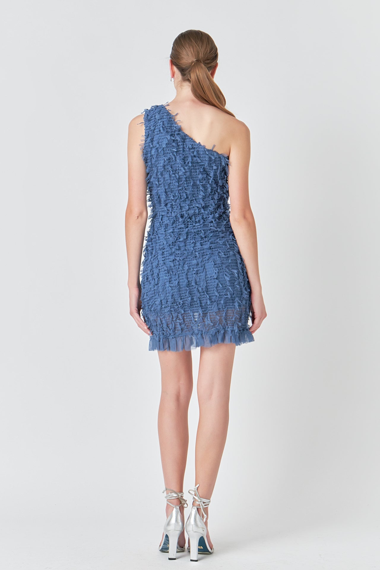 This Mesh Trimmed One Shoulder Mini Dress is the perfect combination of fashion and function. With a mesh trim and fitted silhouette you'll be sure to turn heads. The mini length and one shoulder design make this dress a unique find making it a must for your wardrobe. Step out in style with this dress that is sure to leave a lasting impression!