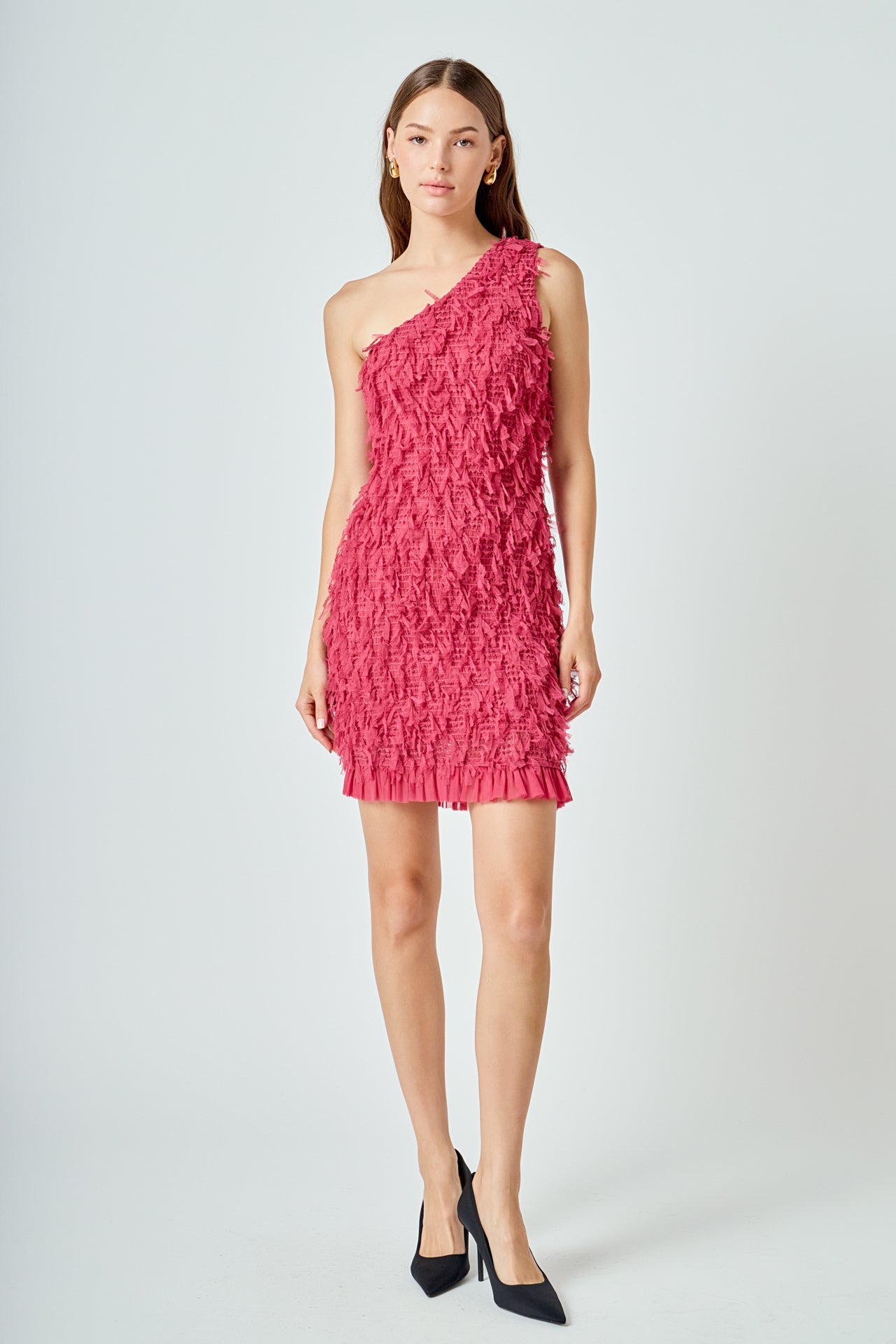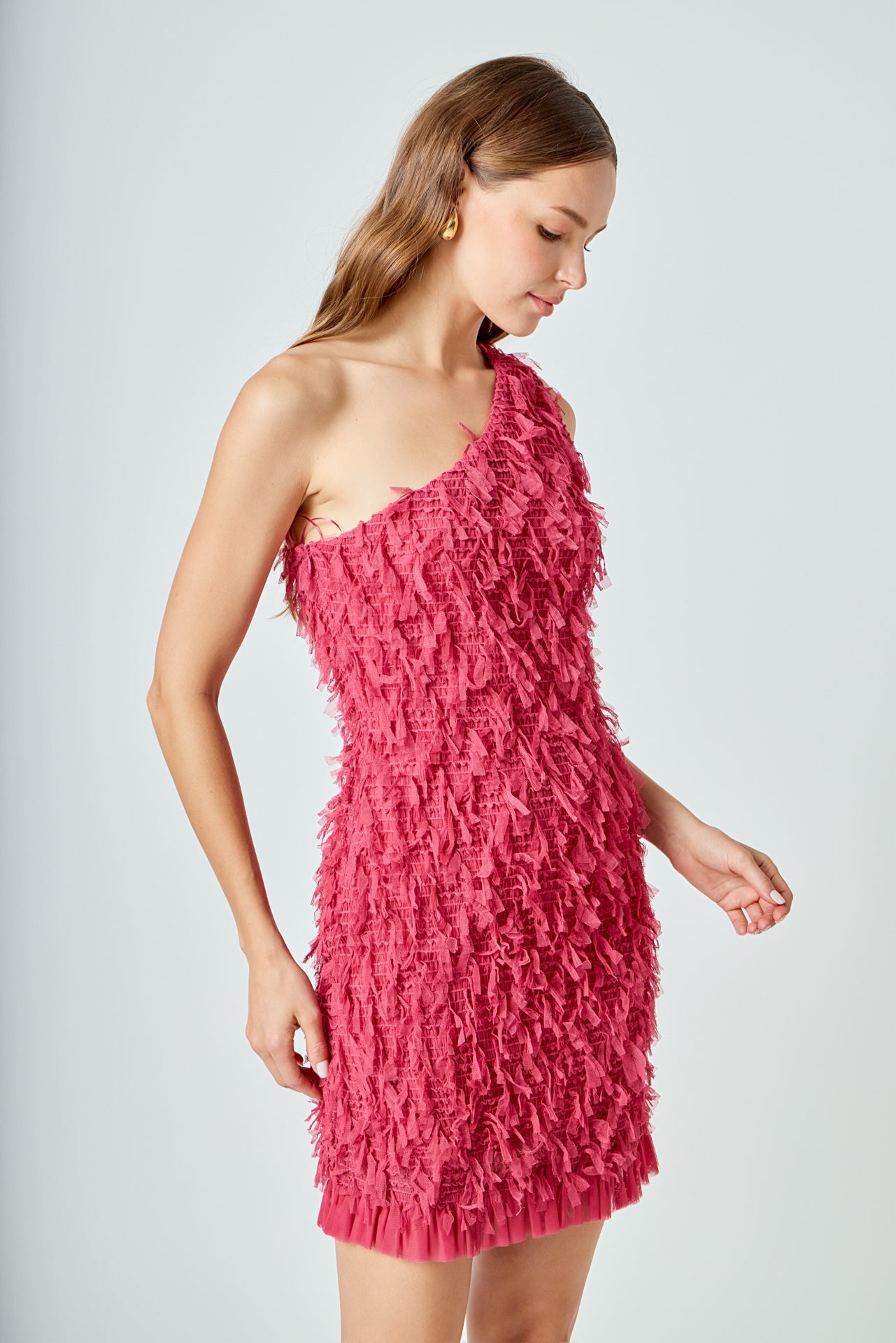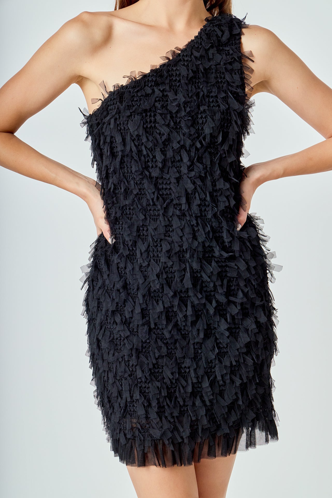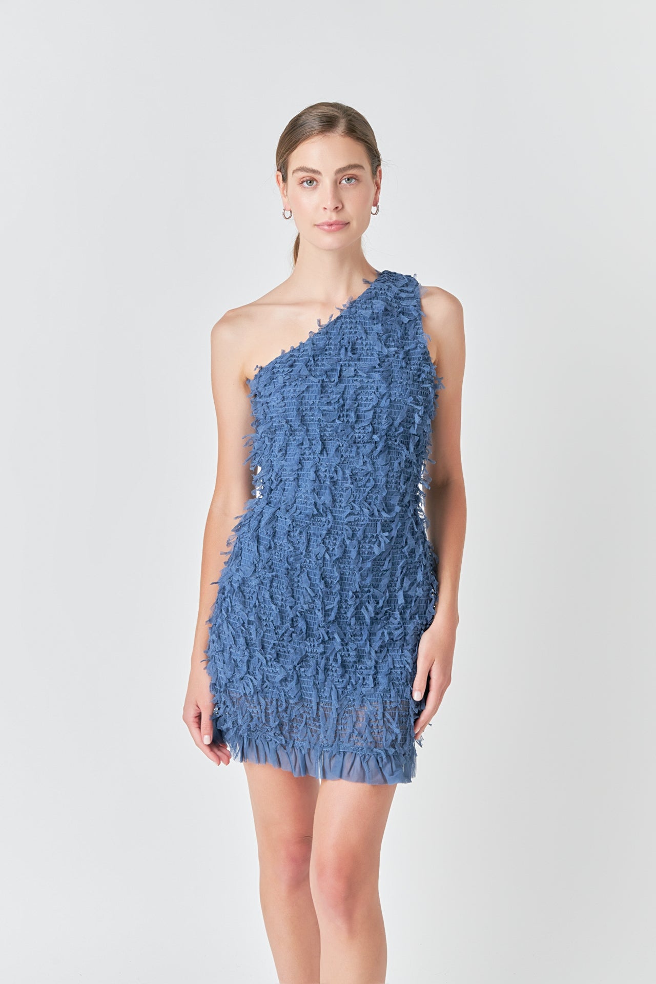 This Mesh Trimmed One Shoulder Mini Dress is the perfect combination of fashion and function. With a mesh trim and fitted silhouette you'll be sure to turn heads. The mini length and one shoulder design make this dress a unique find making it a must for your wardrobe. Step out in style with this dress that is sure to leave a lasting impression!