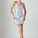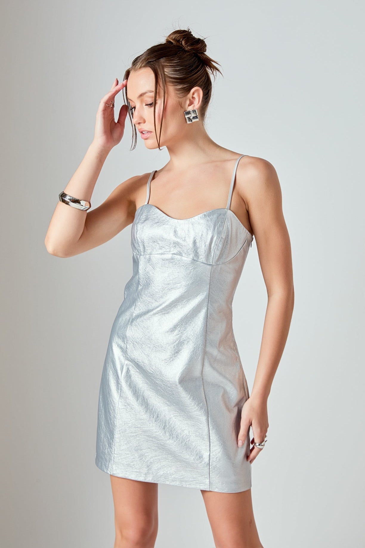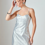 Our Metallic Pu Mini Dress has the perfect blend of glamour and style for any occasion! The fitted luxurious PU dress provides a sultry silhouette while adjustable straps ensure a perfect fit. Celebrate in style with this striking dress that allows you to truly sparkle. The metallic sheen along with the PU finish add a striking and sophisticated touch. Boost your wardrobe with our Metallic Pu Mini Dress!