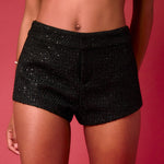 Upgrade your summer wardrobe with our Micro Tweed Shorts. These micro shorts feature a chic tweed pattern that adds a touch of sophistication to any outfit. The mid-rise design ensures a comfortable and flattering fit, while the hook and bar closure keeps them securely in place. Perfect for a day out in the sun or a night on the town, these shorts are versatile and stylish. Made from high-quality materials, they are durable and will last you through many seasons. Don't miss out on this must-have addition to your closet. Shop now and elevate your style game!