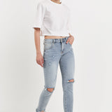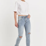 These jeans are designed to flatter your curves and accentuate your waist. Designed with a raw hem and distressed details, these jeans will look chic with a cute top and heels. With a button closure and zip fly, these jeans will look great on anyone.