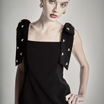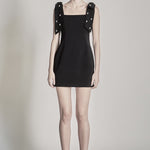 Our Mini Dress with Rhinestone & Pearl Bow is all about effortless glamour. The square neckline and sleeveless cut create a flattering silhouette, while the bow straps, adorned with pearls and rhinestones, add a sparkling, feminine touch. Soft, high-quality fabric ensures comfort, making it perfect for parties, date nights, or any occasion where you want to stand out.