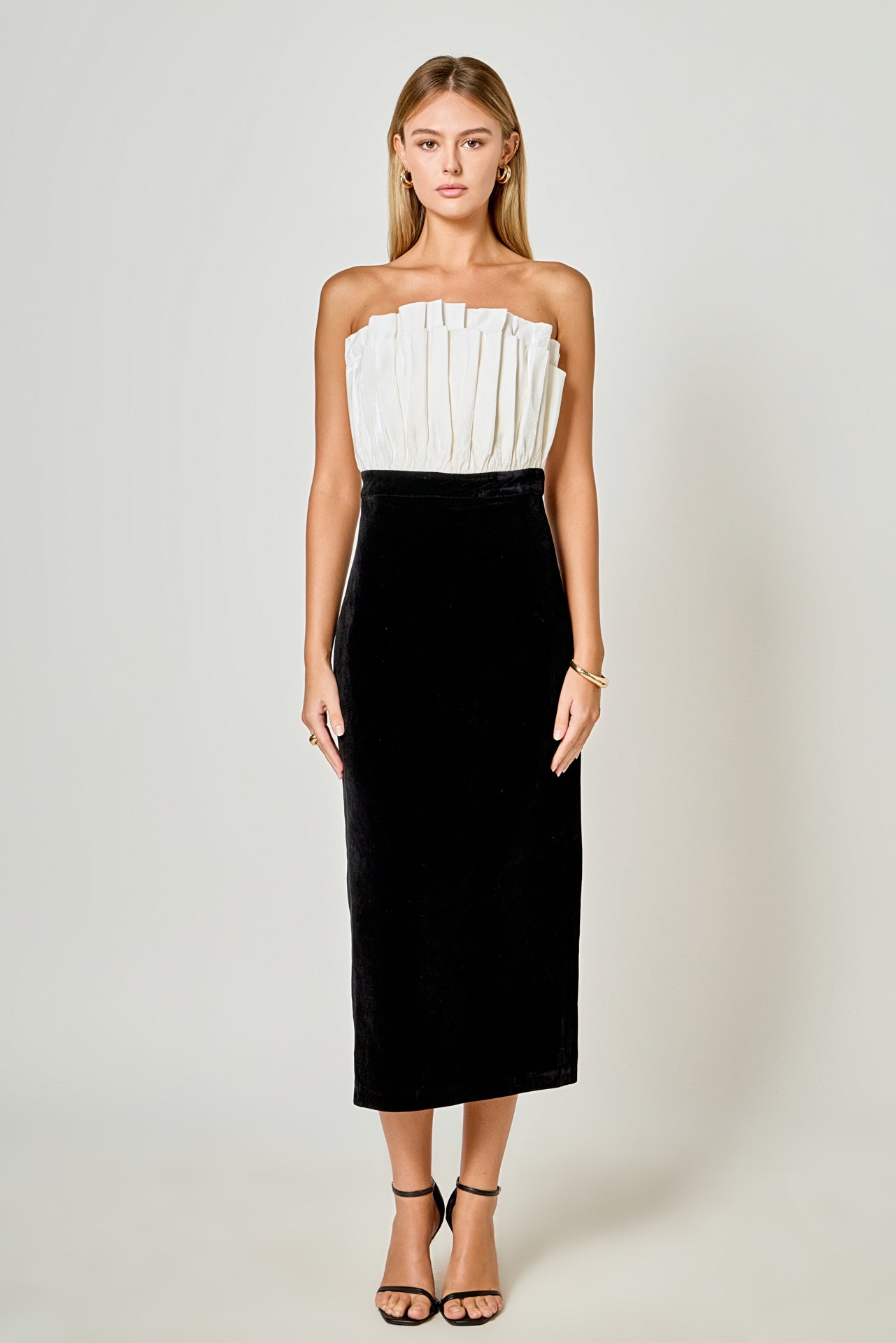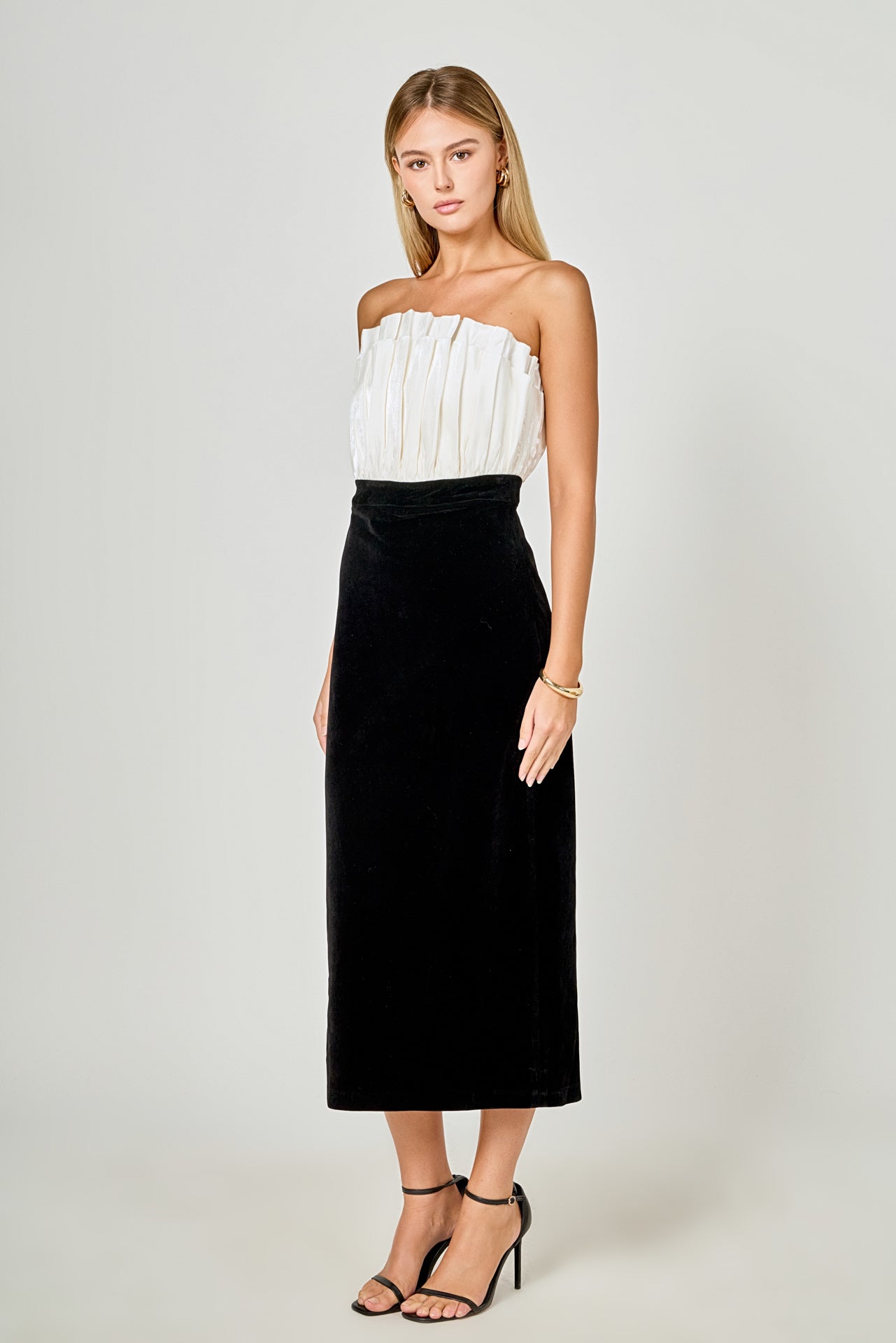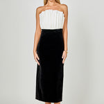 Mix Media Velvet Strapless Midi Dress