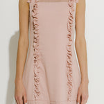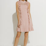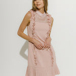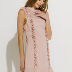 This Mixed Media A Line Dress with Ruffle Details is a must-have for every fashionista! It features a mock neck, sleeveless design, a back zipper for easy wear, and a unique mixed media texture. With its statement ruffle details, this dress will take your look to the next level. Get your hands on this stylish and comfortable piece today!