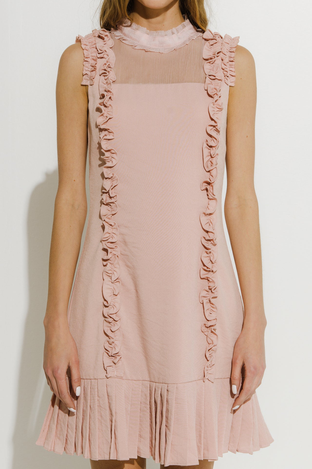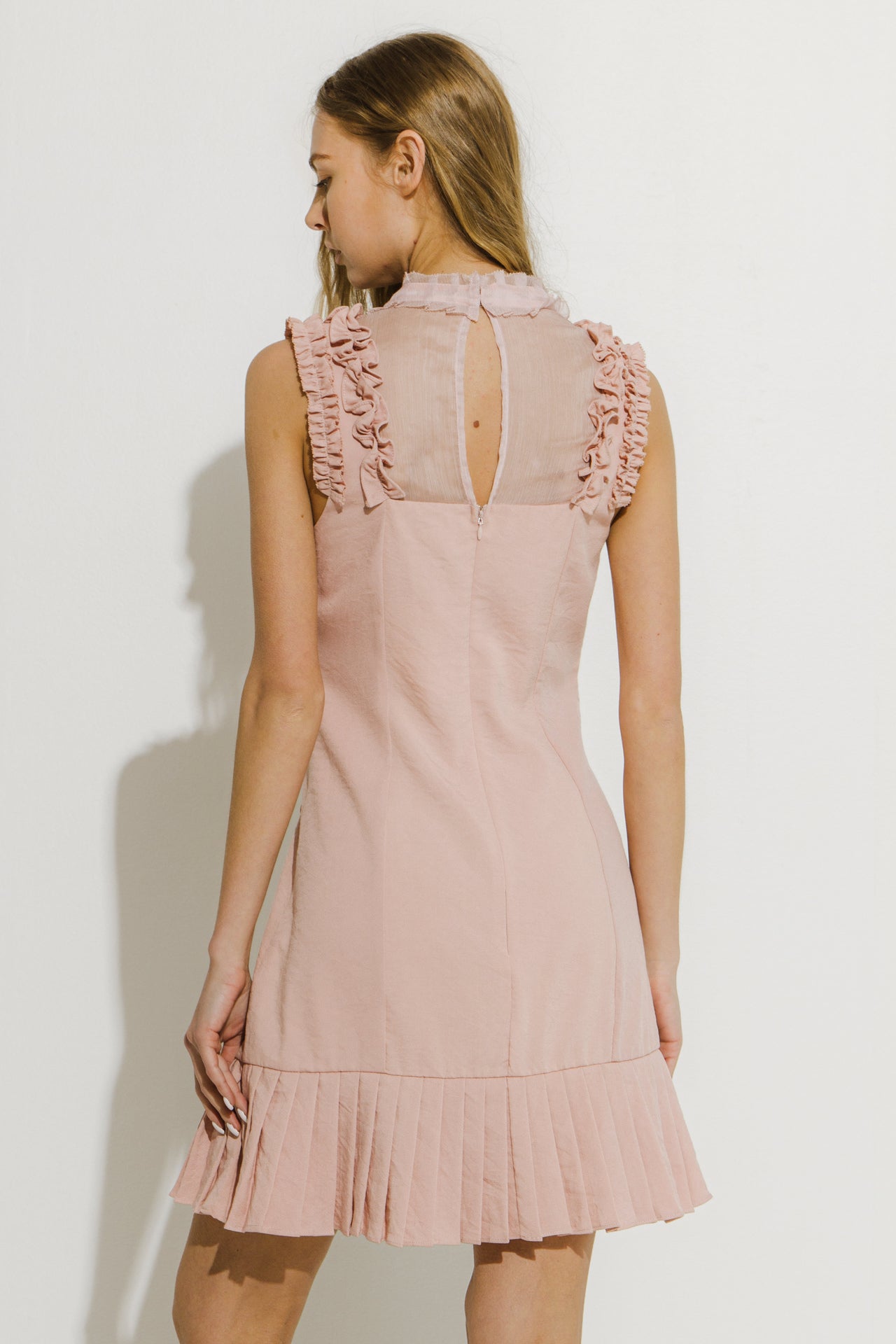 This Mixed Media A Line Dress with Ruffle Details is a must-have for every fashionista! It features a mock neck, sleeveless design, a back zipper for easy wear, and a unique mixed media texture. With its statement ruffle details, this dress will take your look to the next level. Get your hands on this stylish and comfortable piece today!