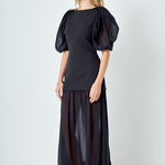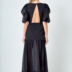 Introducing our Mixed Media Drop Waist Maxi Dress, the perfect blend of elegance and modernity. Featuring a boat neckline and flattering half sleeves, this dress is designed to make you stand out on any occasion. The back neck button adds a touch of sophistication while the center back waist hidden zipper ensures a sleek fit. The combination of different fabrics creates a unique and eye-catching look. Perfect for any body type, this dress is a definite wardrobe essential. Get yours now and make a statement wherever you go.