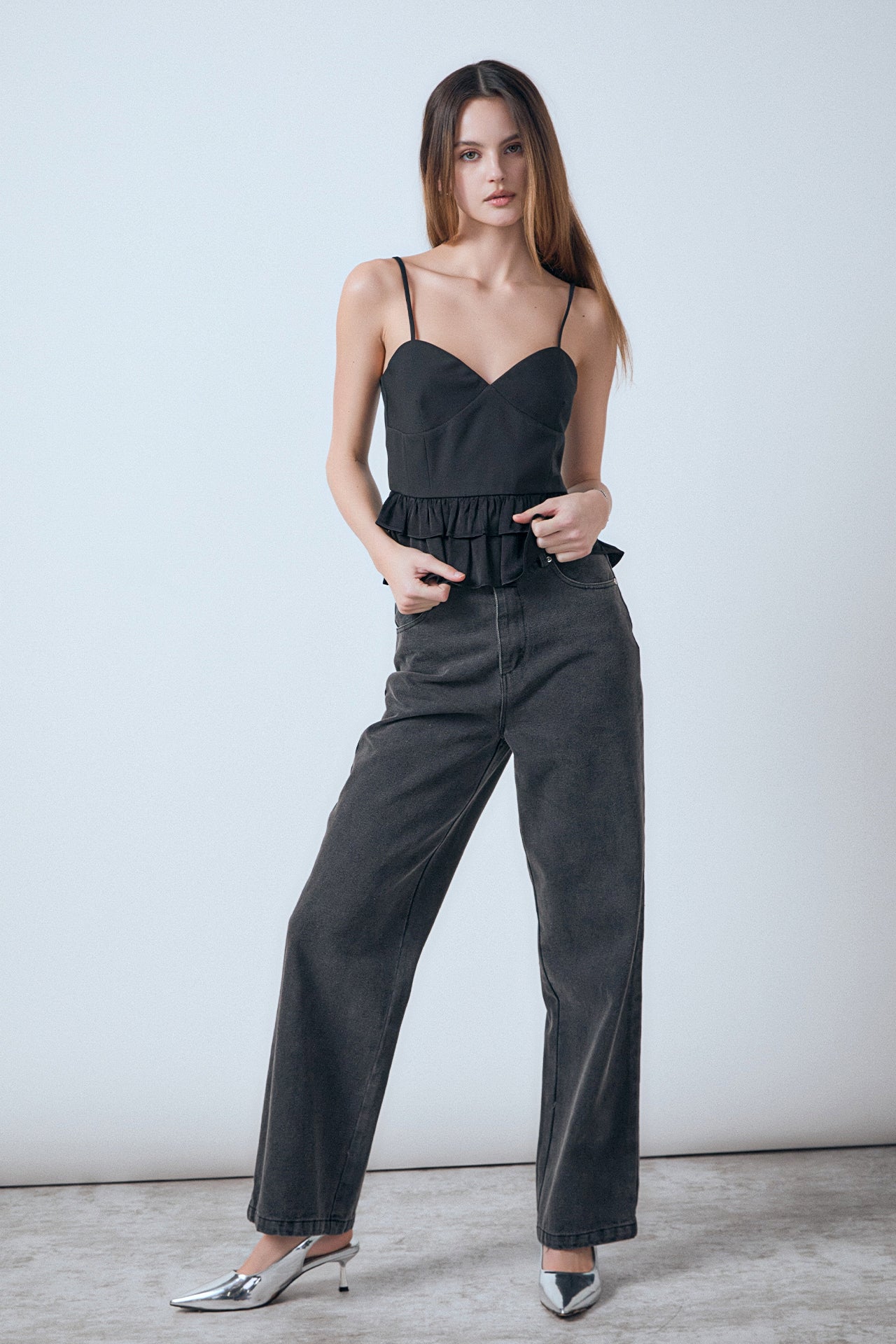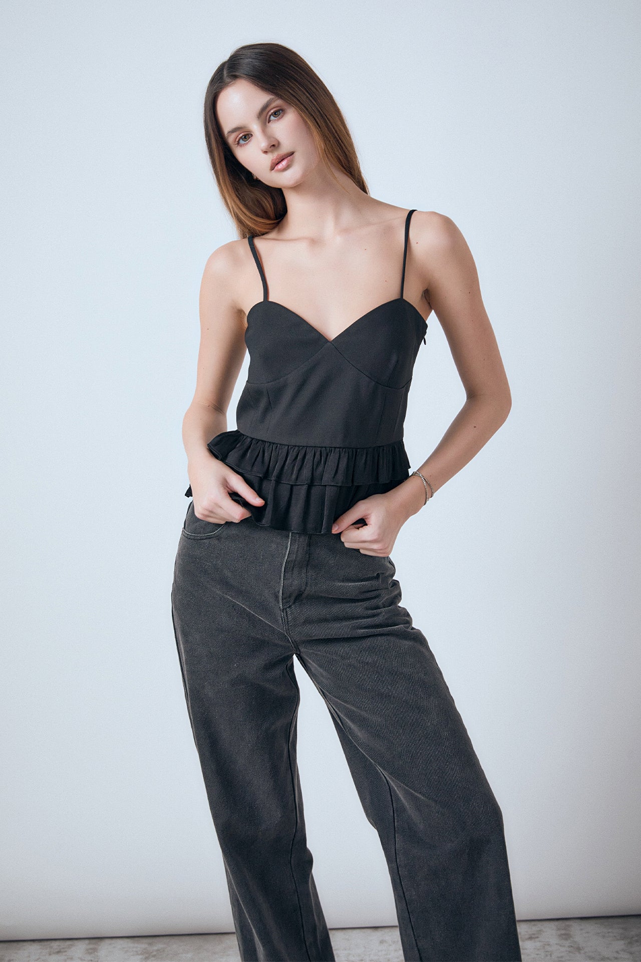 - two layers peplum waist
