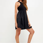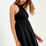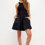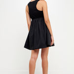 Unique and chic, this mixed media top is perfect for a night out. With a sleeveless racerback knit top and matching poplin mini skirt, this outfit is sure to turn heads. The partial lining makes it comfortable to wear all night long. Whether you're hitting the town or going out for dinner, this outfit is sure to make you look your best.
