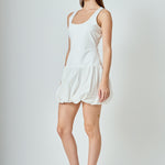 Quinn Mixed Media Scoop Neck Blouson Mini Dress