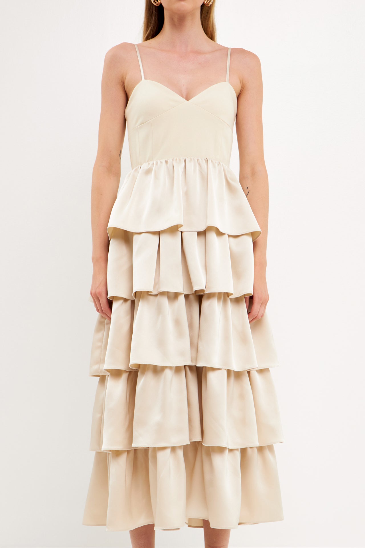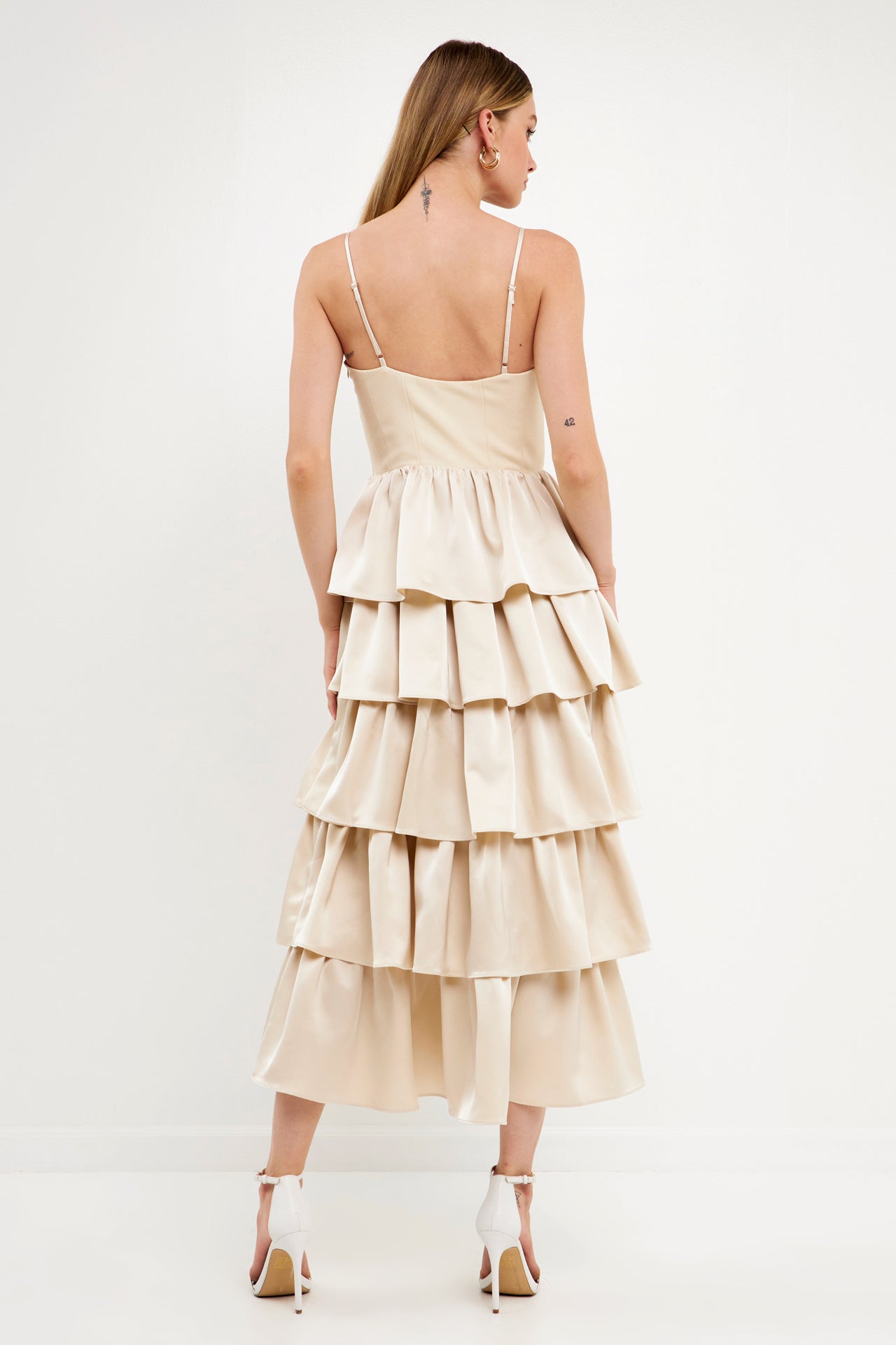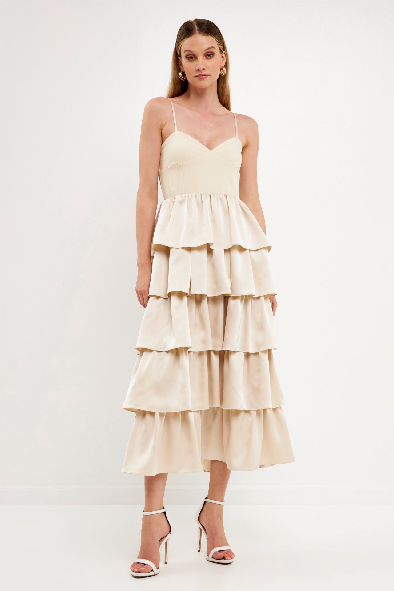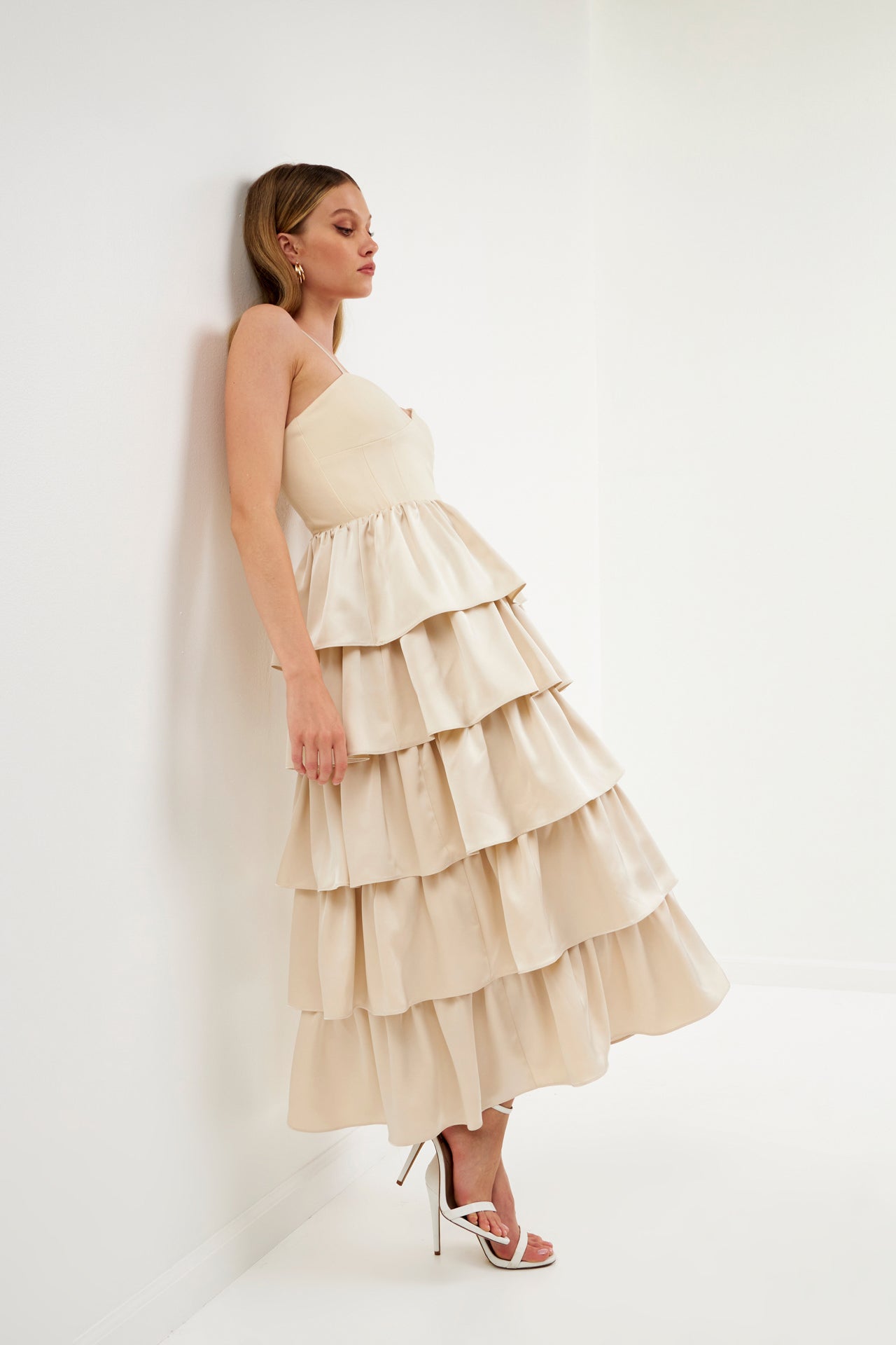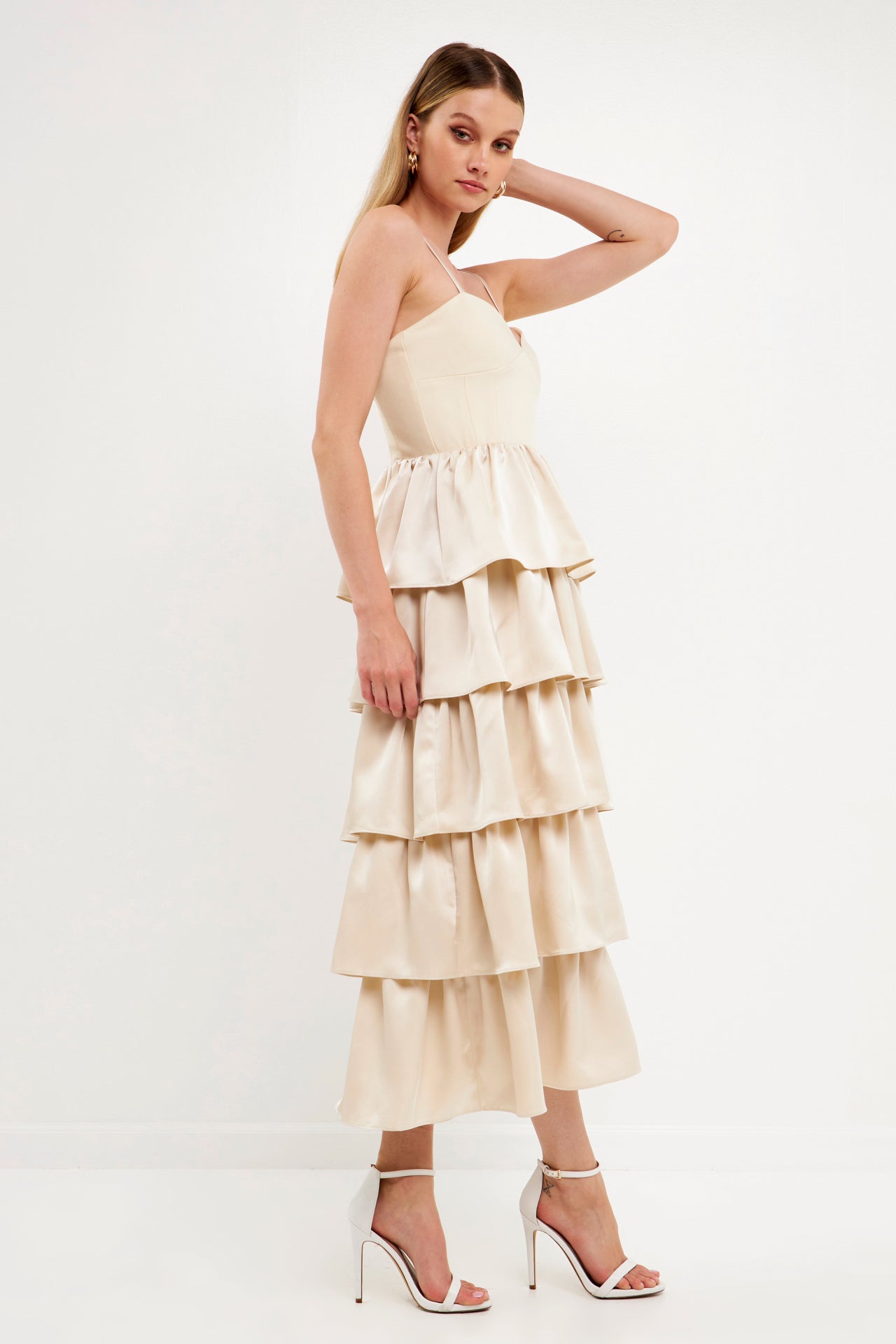 This fun and flirty dress is a must-have piece for your closet! The Mixed Media Maxi Dress is perfect for any special event, especially one with dancing. The tiered skirt moves beautifully and as soon as you slip this dress on, you'll want to dance all night long. The adjustable spaghetti straps and fitted bodice ensure this dress forms to your body perfectly.