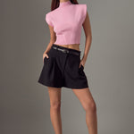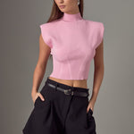 Mock Neck Padded Knit Top