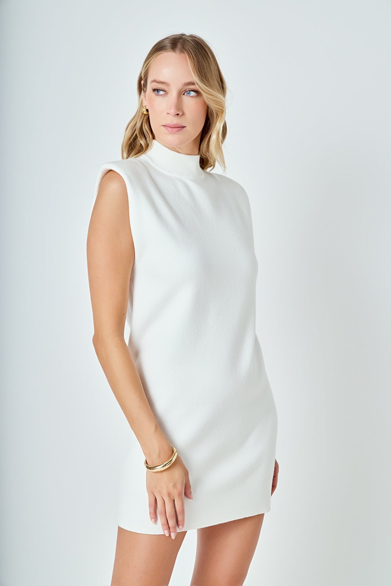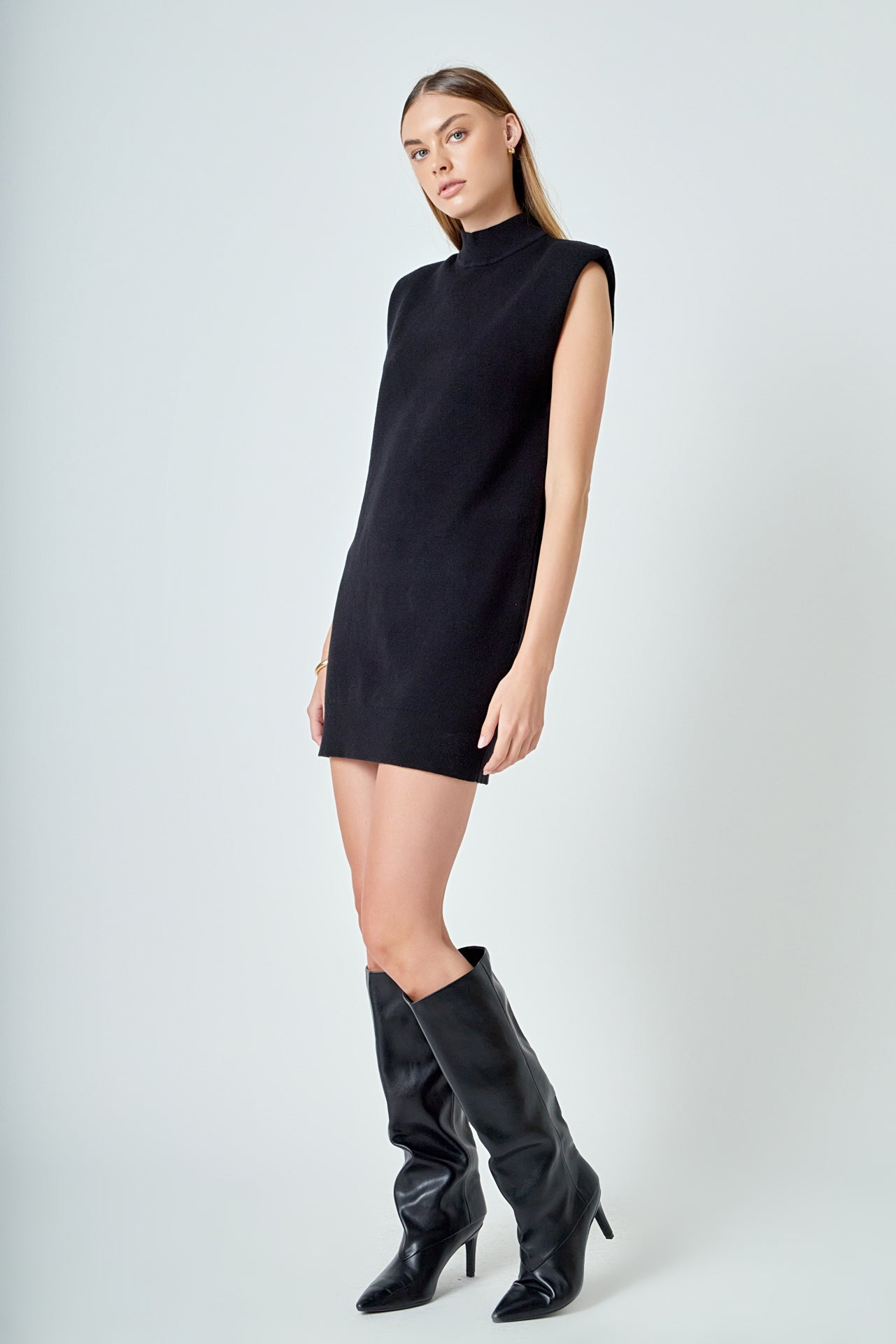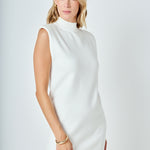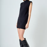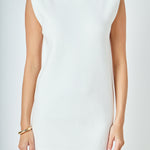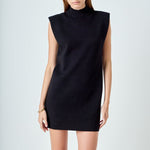 Stay on-trend with our Sleeveless Knit Mini Dress! The relaxed straight fit and soft knit material make it the perfect piece for any occasion. With its mock neck and shoulder pads, you'll be bringing chic vibes wherever you go. The short sleeves add a touch of femininity to this mini dress that can be dressed up or down. Elevate your outfit game with this versatile dress. Whether you're headed to the office or a night out, this mini dress has got you covered. Get yours now to make a statement in style!