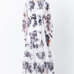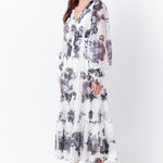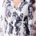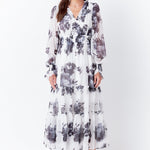 In a beautiful monotone floral, this midi dress is perfect for your next special event. With long sleeves and a tiered skirt, it's both feminine and flattering. The elastic waistband ensures a comfortable and perfect fit, while the ruffle cuffs add a touch of whimsy. Complete the look with your favorite heels and sparkling jewelry. You'll be sure to turn heads in this gorgeous dress.