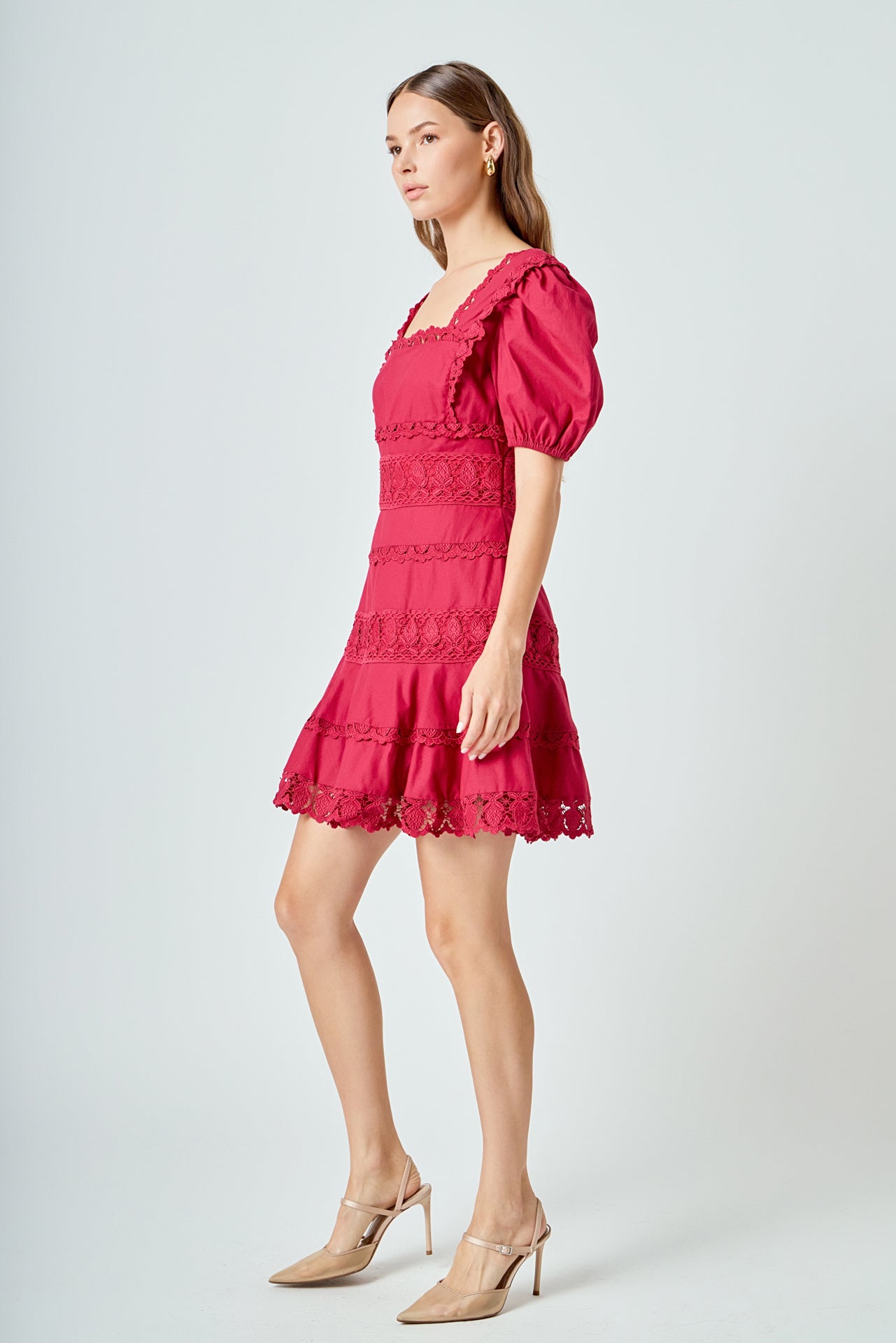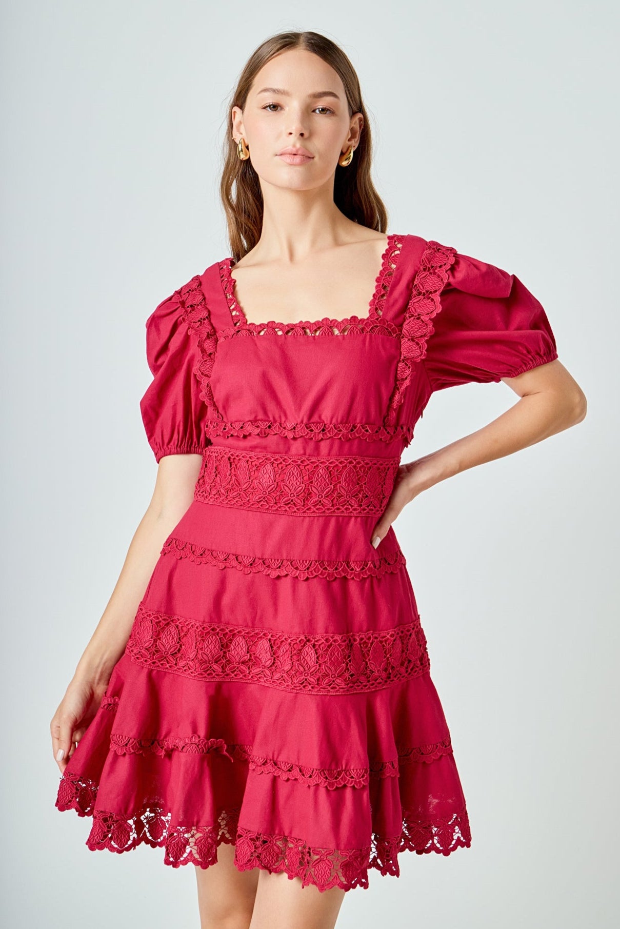 Our Lace Fit-and-Flare Mini Dress is the perfect versatile piece to add to your wardrobe. Wear it during the summer with sandals or pair it with heels and a coat for a winter holiday party. The fit-and-flare silhouette is extremely flattering and highlights your waistline, while the lace details add a feminine touch. And we made sure to add your favorite: pockets!