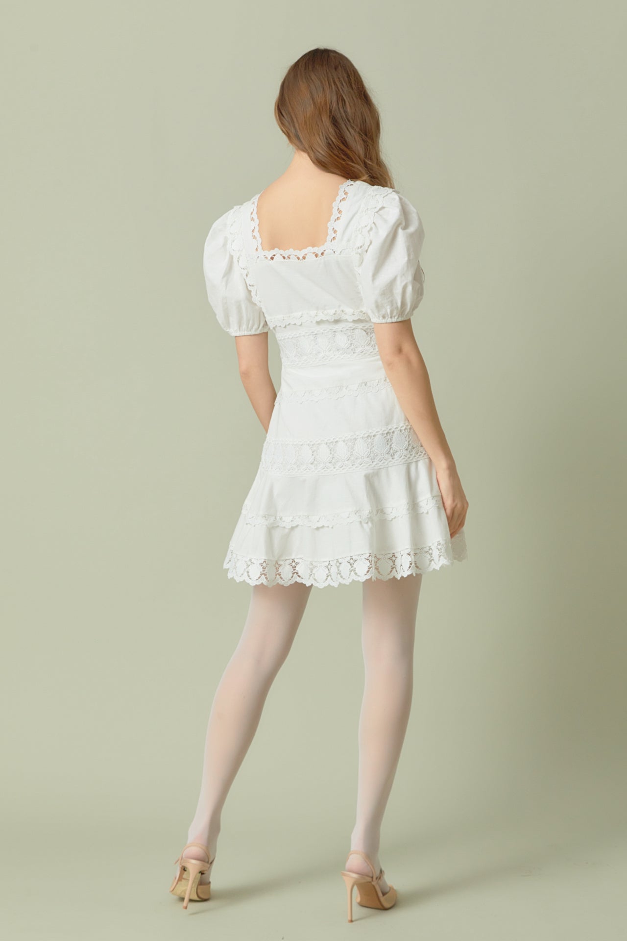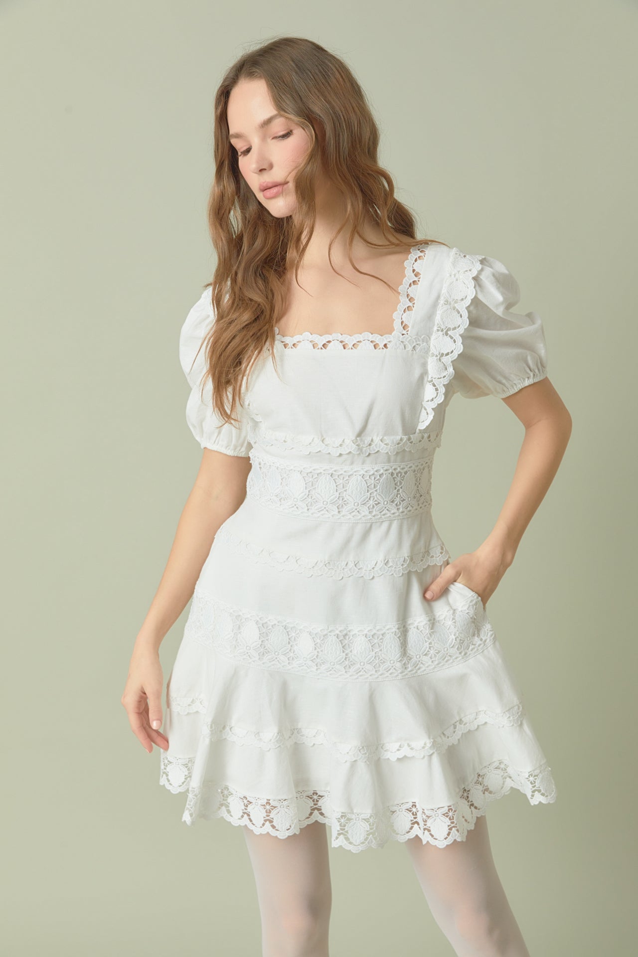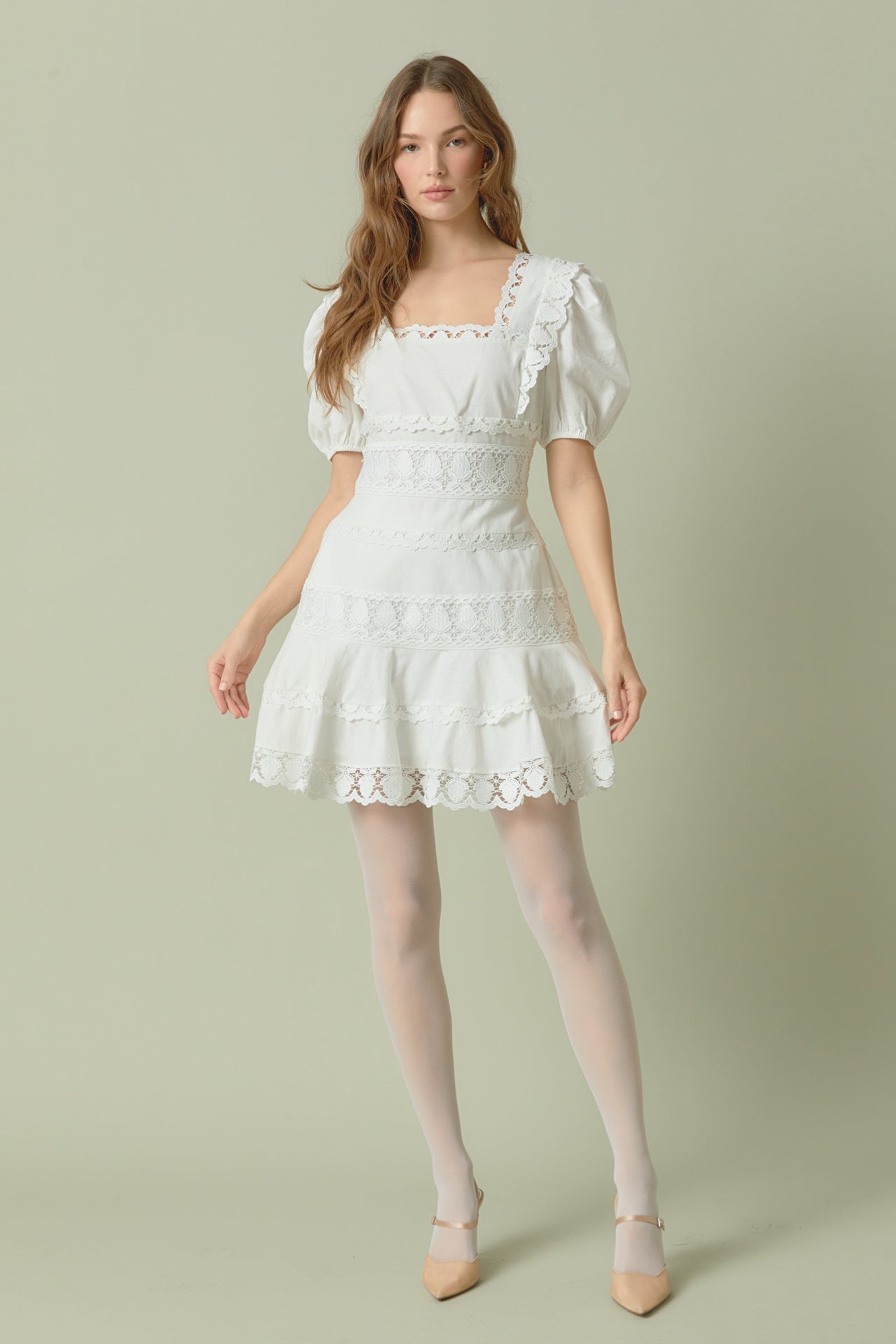 - Lace trim detailing throughout
