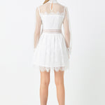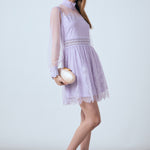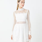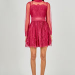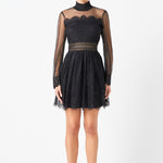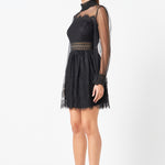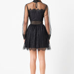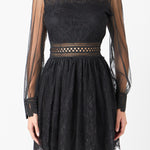 The Long Sleeve Lace Mini Dress is perfect for any woman who wants to show a little bit of skin while remaining elegant. The sheer sleeves and waist cutout add a flirtatious detail, but the lining helps protect your modesty. Made with intricate lace, this mini dress is perfect for nights out on the town, or even a holiday party. Pair with a velvet blazer to complete your fashionable outfit!
