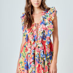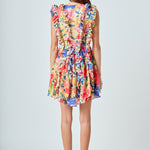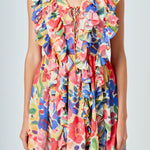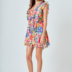 This fun and flirty mini dress is perfect for any summer occasion! The beautiful multi pop floral print will have you standing out in any crowd. And the ruffled bodice adds just the right amount of flirtiness. Pair this dress with wedges or sandals for a look that's sure to turn heads.