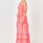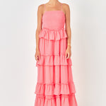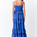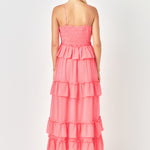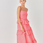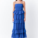 What's not to love about this Multi Tiered Mini Gingham Maxi? With a sheer check print, adjustable spaghetti tie, smocked bodice, and multi tiered ruffles, this maxi is perfect for any summer occasion. The lining provides just the right amount of coverage while the maxi length keeps you cool and comfortable all day long.