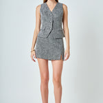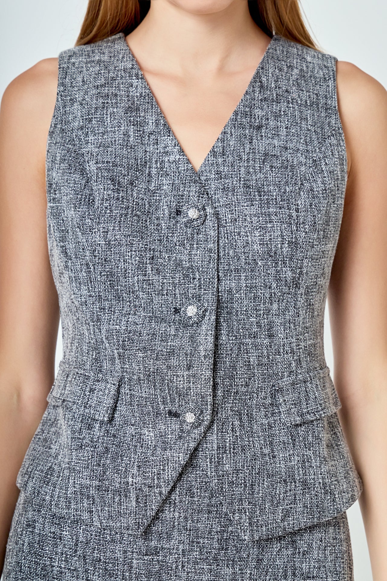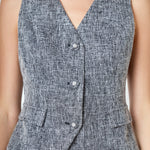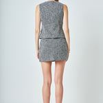 The Multi Tweed Buttoned Vest is the perfect addition to your wardrobe, with its trendy V neckline and stylish front buttons. Crafted from high-quality tweed material, this sleeveless vest exudes sophistication and elegance. Its versatile design pairs well with any outfit, making it a must-have for any fashion-forward individual. Enhance your style game with this unique and timeless piece. Perfect for any occasion, the Multi Tweed Buttoned Vest is a must-have for all fashion enthusiasts. Don't miss out on this must-have item.