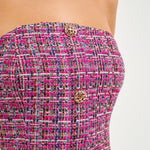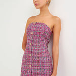 A classy, yet flirty mini dress that you can style for multiple occasions. Our Strapless Tweed Mini Dress is perfect for showing off your collarbones and features beautiful gold buttons down the front. Pair this mini dress with the matching jacket for an elegant and fashionable ensemble.