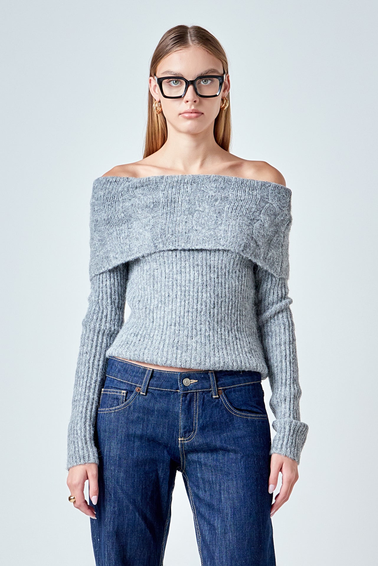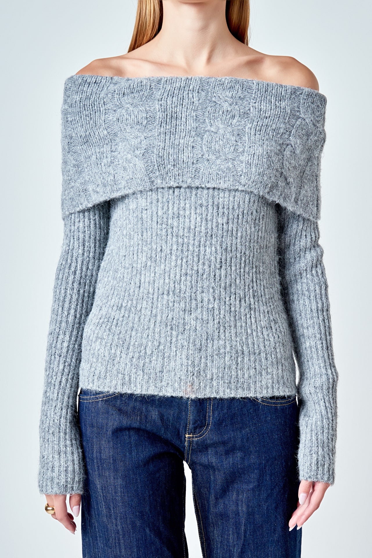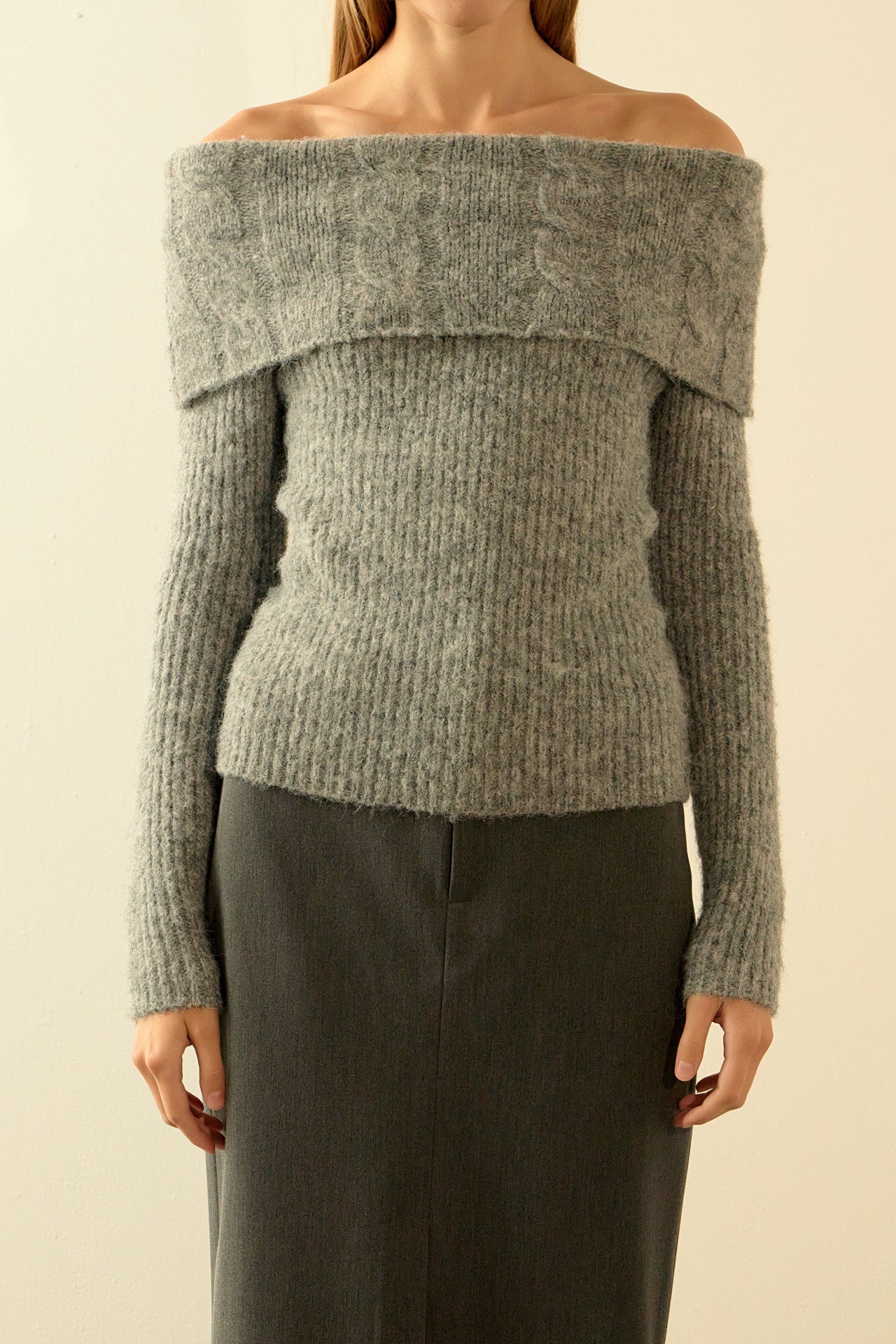 Off Shoulder Cable Knit Sweater